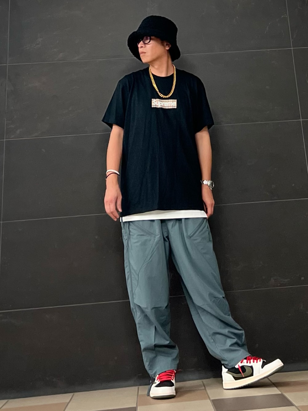 OOTD✨ バケハ→古着 メガネ→effector t→supreme×burberry インナー→remer パンツ→goopimade スニーカー→nike×travisscott アクセ→sbg,bayaro Thank you🔥 Take care✌️