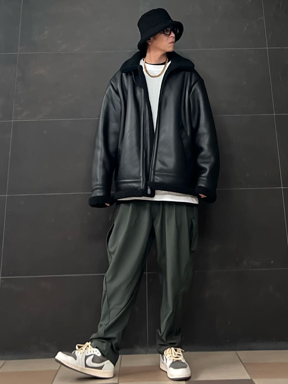 OOTD🎩🎩🎩 バケハ→古着 ムートンジャケット→gu ネックレス→sbg インナー白→UNIQLO インナー黒→UNIQLO パンツ→goopimade スニーカー→nike Thank you✨ Take care✌️