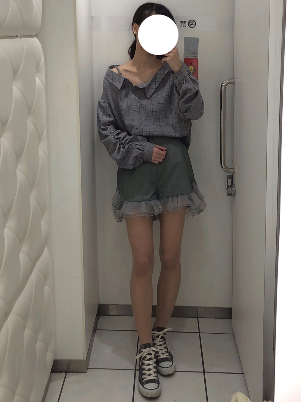 なるのシャツ/ブラウス「【雑誌掲載】アシメワンショルダーチェックシャツ」を使ったコーディネート