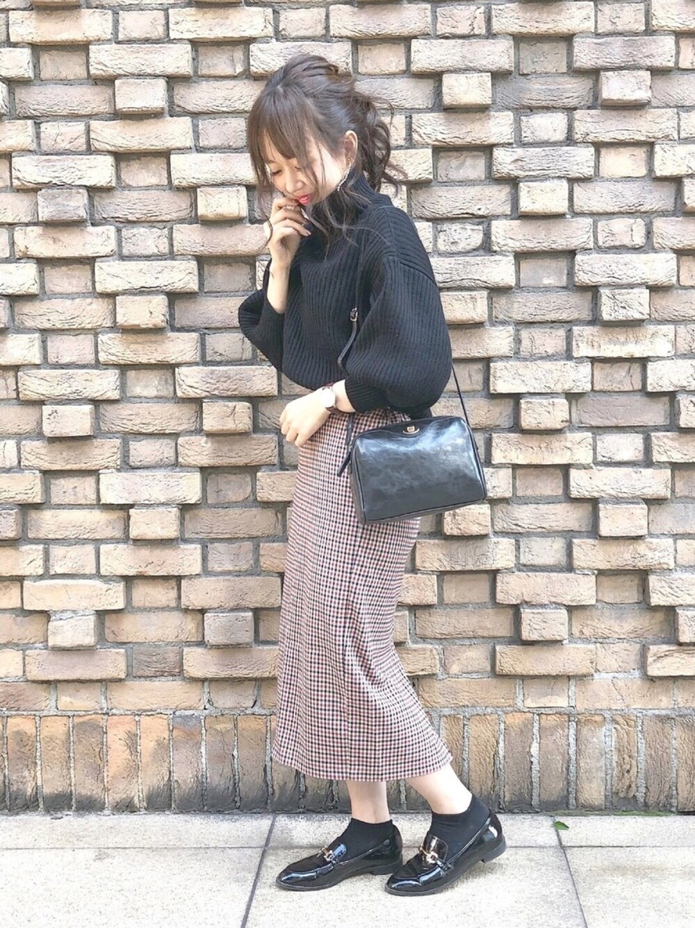 トップス→M スカート→S このトップス、前回はコーデュロイパンツ、前々回はフレアスカート を合わせたので、今回はタイトスカートとあわせてみました❤️ バッグと靴で落ち着かせて大人っぽくしました♩*゜ Instagram ▸▸ @__haru3