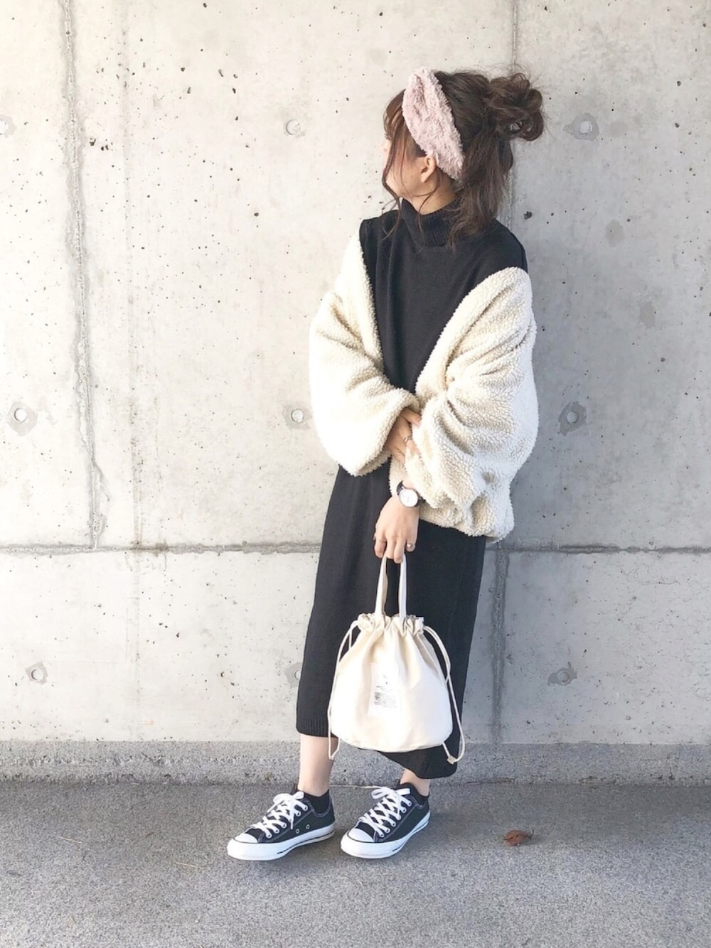 haru ◎のワンピース「タートルネックロングニットワンピース」を使ったコーディネート