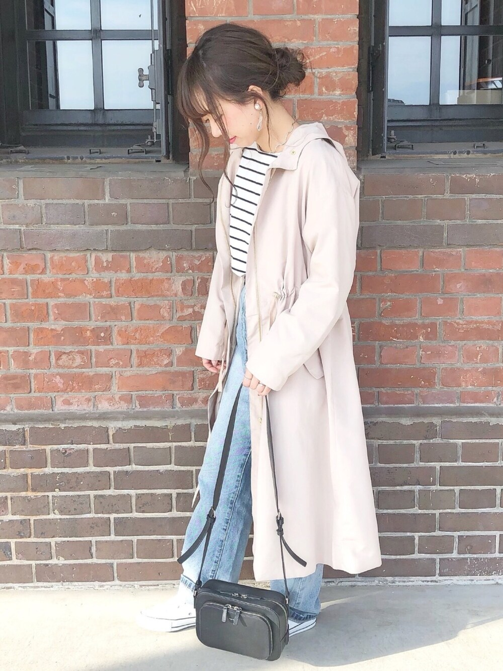 GU の ドローストリングフーデッドコート は Sサイズを着ています✨ → ¥3990 + tax そのまま着るよりウエストのところをすこし しぼってあげるとかわいいとおもいます☺ Instagram ▸▸ @__haru3