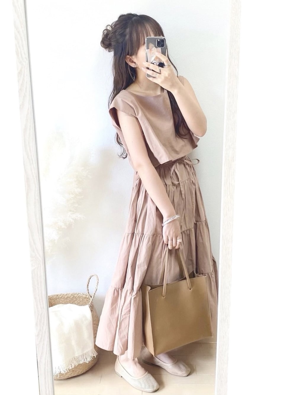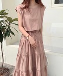 haru ◎のワンピース「2WAY セットアップ風 フレンチスリーブ ティアードロングワンピース」を使ったコーディネート