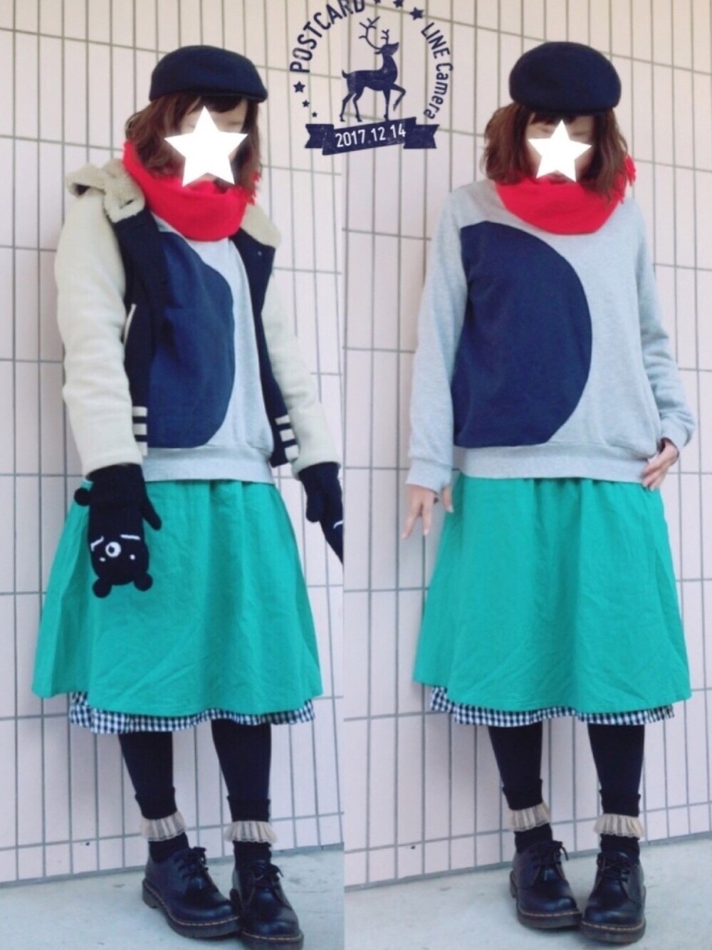 今日は寒色系なコーデ。 寒いのに余計に寒く見えちゃうので マフラーはツモリのピンクいマフラー🧣 で温かみプラスー。 ネネットのJAPAN裏毛トレーナーは親指が袖から出せるやつで寒さ対策バッチリ〰 何度も着ちゃってたから 多少ヨレてる。。。 スカートはリバーシブルなプゥドゥドゥのスカート。 タイツはヒートテック! やっぱり暖かさ違います❗️ 今日は朝からバタバタして、髪の毛ボサボサです💦 帽子でカバーしたつもりが全く😩