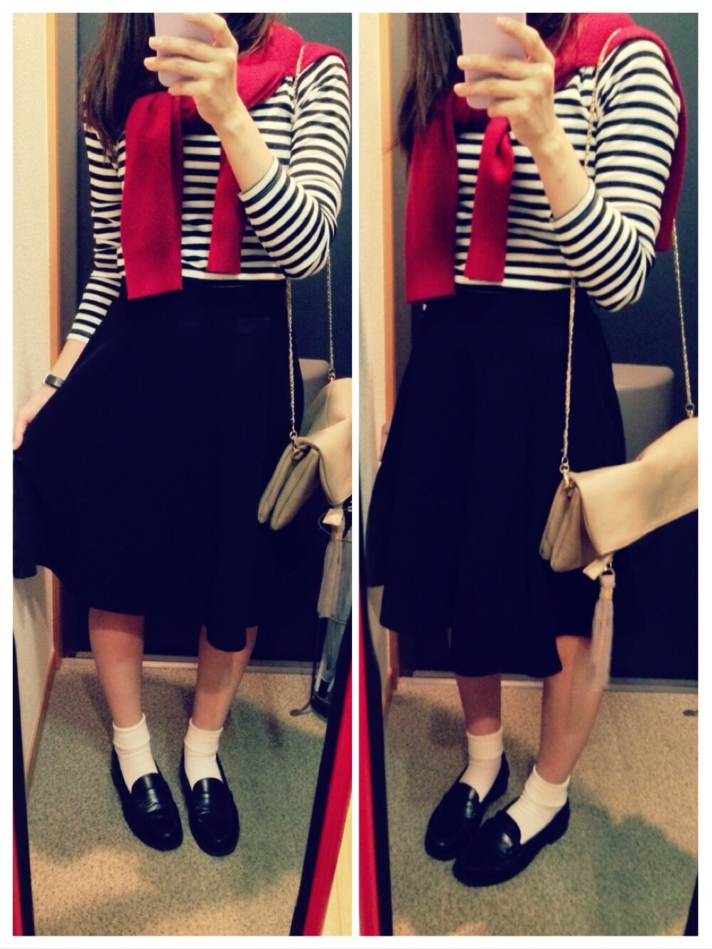 久しぶりに靴下履きました。 そしてトップスMUJI、スカートGUというプチプラコーデです。笑