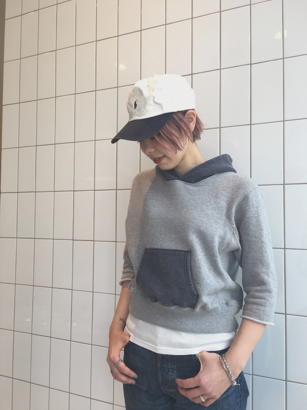 Ronherman×MASACAのパーカー ビンテージ加工が可愛くて、サイズ感も少し小さめなのがツボです♡♡ これにライダースをはおって、 かなりメンズよりになりました😂