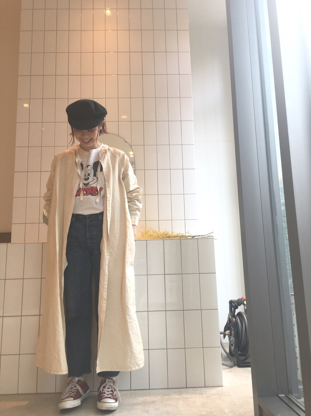 今期のsteven alanのワンピース☺︎ 前後ろ逆に着て、はおりにしてみました! インにmickeyTをきて遊び心を🐭