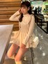 [身長]155cm [骨格]ウェーブ [ボトム]Fサイズ 【tops】サラッとした素材なので全くチクチクすることなく着れます☺️ 伸びもあるので着やすいです🙆🏻♀️ 首元にはワンポイントの刺繍があるのが可愛いです💞 割と首元はゆとりがあるので苦しいのが苦手な私でも毎日着てます🤭 (柔らかい素材なので私は首元2回折ってます) 【bustier】ベロア素材にビジューが付いているのが可愛いデザインになってます🤍 切り返し位置でスッキリ見えもしてくれて、 骨格ウェーブの気になる骨盤やお尻周りをカバーしてくれました🥰 肩紐部分にはアジャスターとボタンが着いているので長さ調節もできます🙆🏻♀️ リボンは取り外しも出来るのでます🎀 後ろにはゴムがしっかり入っているので とっても着やすかったです🫶🏻 【bottom】ハイウエストのショートパンツなので ウエストはスッキリ見えしてくれます💘 後ろはレースアップになっているので ウエスト調節もでき、後ろ姿を可愛く見せてくれます😌💕 左側にはチャックも付いているので脱ぎ着しやすい作りになってます☺️