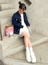 [身長]155cm [骨格]ウェーブ [ボトム]Fサイズ [靴のサイズ]23.5cm (Mサイズ) 【outer】男女兼用で着れるので女性が着ると オーバーサイズのダボッと感が可愛いジャケットです🥰 丈はお尻隠れてくるくらいです! カジュアルなデニムもチュール合わせだと 甘め好きの私でも着やすかったです︎🫶🏻 【tops】柔らかめのニットにチュールが重なっていて ニット部分はお尻が隠れる丈感で、 チュール部分は膝上の丈なので短めの丈抵抗ある方でも着やすいかなと思います🤍 生地は薄目だけどしっかりとした素材なので 下着が透ける心配はありませんでした🙆🏻♀️ チュールの切り返し位置が腰より上の位置なのでバランス取ってくれます︎🫶🏻 前後2wayなのでどちらが前でも着れます😌 【shoes】23.5cmでMサイズを着用しましたが、 割とゆとりがあったのでワンサイズ下げてSサイズでも良さそうでした☺️ 厚底なのにすごく軽くて、 中敷きはクッション性のあるタイプなので 歩きやすく痛くなりにくいと思います︎🫶🏻