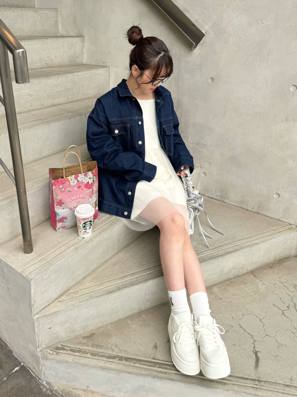 [身長]155cm [骨格]ウェーブ [ボトム]Fサイズ [靴のサイズ]23.5cm (Mサイズ) 【outer】男女兼用で着れるので女性が着ると オーバーサイズのダボッと感が可愛いジャケットです🥰 丈はお尻隠れてくるくらいです! カジュアルなデニムもチュール合わせだと 甘め好きの私でも着やすかったです︎🫶🏻 【tops】柔らかめのニットにチュールが重なっていて ニット部分はお尻が隠れる丈感で、 チュール部分は膝上の丈なので短めの丈抵抗ある方でも着やすいかなと思います🤍 生地は薄目だけどしっかりとした素材なので 下着が透ける心配はありませんでした🙆🏻♀️ チュールの切り返し位置が腰より上の位置なのでバランス取ってくれます︎🫶🏻 前後2wayなのでどちらが前でも着れます😌 【shoes】23.5cmでMサイズを着用しましたが、 割とゆとりがあったのでワンサイズ下げてSサイズでも良さそうでした☺️ 厚底なのにすごく軽くて、 中敷きはクッション性のあるタイプなので 歩きやすく痛くなりにくいと思います︎🫶🏻