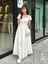 [身長]155cm [骨格]ウェーブ [靴のサイズ]23.5cm (Mサイズ) 【onepiece】丈はMサイズを着用してます😌 首元はスクウェアなのでスッキリ見えしてくれます🥰 ウエストにゴムが入っているので脱ぎ着はしやすかったです🙆🏻♀️💕 ウエスト位置が高めなので細見えとスタイル良く見せてくれました🤍 肩にはゴムが入っているのでオフショルでも着れます☺️ 白は裏地が着いてますが濃いめの下着は避けた方が良さそうでした🥲 ペチコートかペチパンツを更に中に着るか、 肌なじみのいい下着を着た方が良さそうです︎🫶🏻