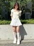 [身長]155cm [骨格]ウェーブ [靴のサイズ]23.5cm (Mサイズ) 【tops】ダブルZIPなので上下で開け閉めできるので、肌見せ大丈夫な方はオフショルやお腹見せても可愛いです︎🫶🏻 襟が広めなので肩が張ることなく落ちてくれる感じなので着やすかったです🥰 普段こういうトップスは着ないけど甘めのボトムと合わせたら抵抗なく着れました🙆🏻♀️ 【bottom】形が綺麗なのでシルエットがスッキリ見えます🤭 ハイウエストで骨格ウェーブが気になる骨盤とお尻がカバーできました💞 プリーツの形が広めでしっかりしてるので広がりすぎず綺麗な広がり方してくれます︎🫶🏻 【shoes】23.5cmでMサイズを着用しましたが、 割とゆとりがあったのでワンサイズ下げてSサイズでも良さそうでした☺️ 厚底なのにすごく軽くて、 中敷きはクッション性のあるタイプなので 歩きやすく痛くなりにくいと思います︎🫶🏻