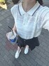 [身長]155cm [骨格]ウェーブ [靴のサイズ]23.5~24.0cm (Mサイズ) 【tops】透け感があり薄めのニットなので夏場でも着やすい素材でした🥰 編み目がリボンになっているので、 カジュアルになりがちなポロニットも 甘めが好きな方でも着やすいと思います🫶🏻 ハイウエストだとインがしやすい丈感でした😌🤍 【bottom】形が綺麗なのでシルエットがスッキリ見えます🤭 ハイウエストで骨格ウェーブが気になる骨盤とお尻がカバーできました💞 プリーツの形が広めでしっかりしてるので広がりすぎず綺麗な広がり方してくれます︎🫶🏻 【shoes】23.5cmでSサイズを着用しました🥰 いつもならMサイズなのですが、 大きめなのでワンサイズ下げて履いてちょうど良かったです🙆🏻♀️ 厚底なのにすごく軽くて、 中敷きはクッション性のあるタイプなので 歩きやすく痛くなりにくいと思います︎🫶🏻