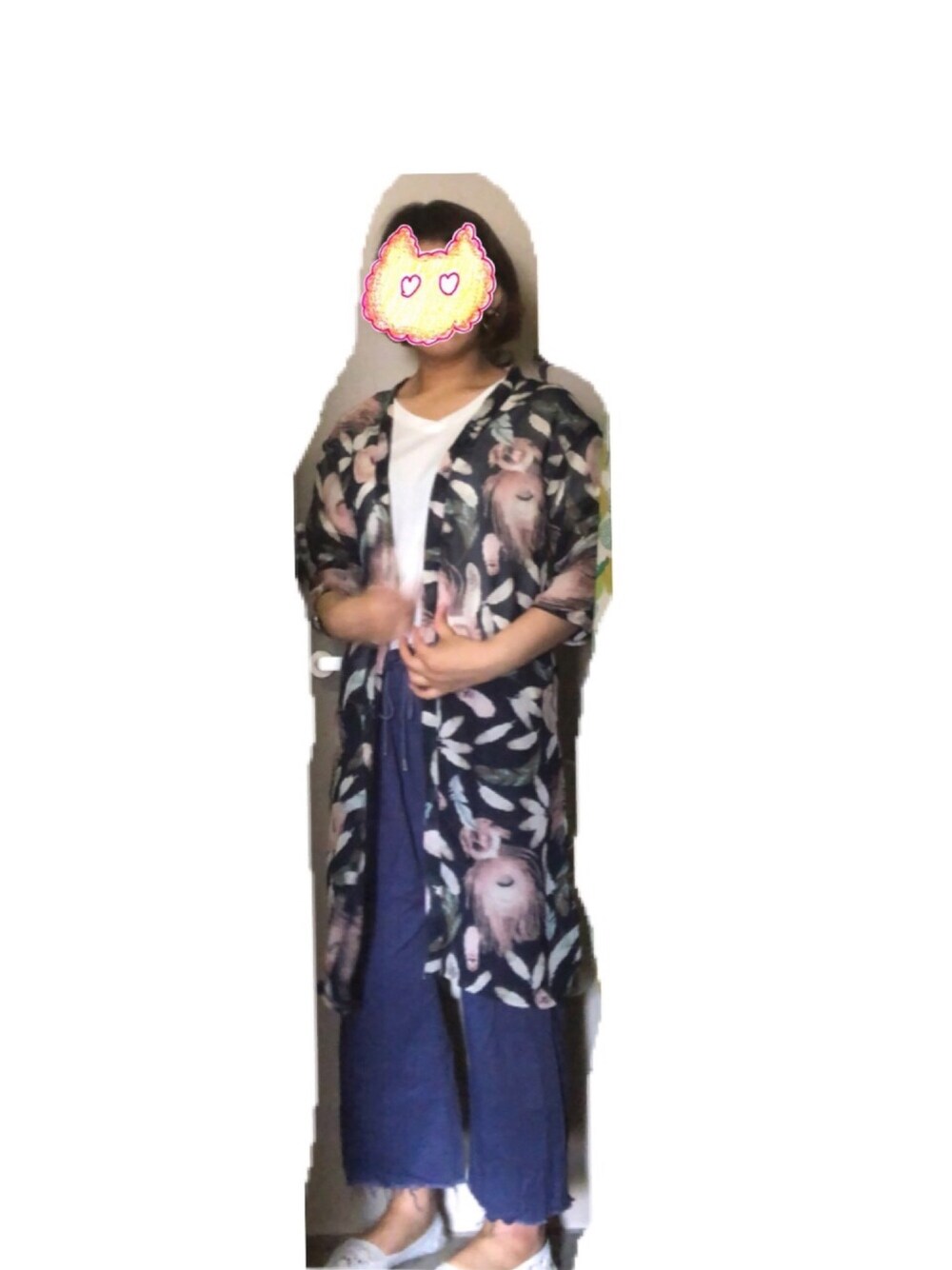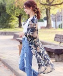 ちはのカーディガン/ボレロ「七分袖シースルーシフォン総柄&花柄UVケアロングガウンカーディガン」を使ったコーディネート