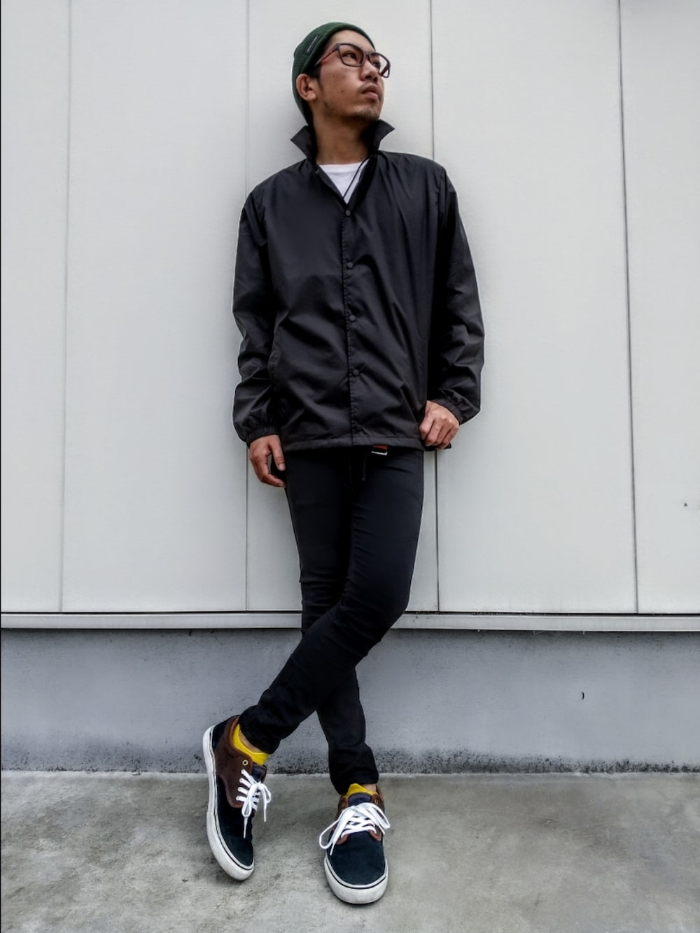 毎日たくさんの閲覧、いいねありがとーです🙏 投稿の励みになります! 今日は昨日のピンクとは趣を変えてシックなモノトーン主体のコーデです😉 黒で重くなりすぎないようにソックスの黄色で明るさを✨ ニット帽は2000年代前半のストリート系ファッション時代からの戦友のEmpireのニット帽です✨ お手入れしつつ大事に被ってます👅 古きを温めて新しきを知るですね🥴 では天気はぐずつきそうですがせめて心は晴れでみなさんよい1日を☀️
