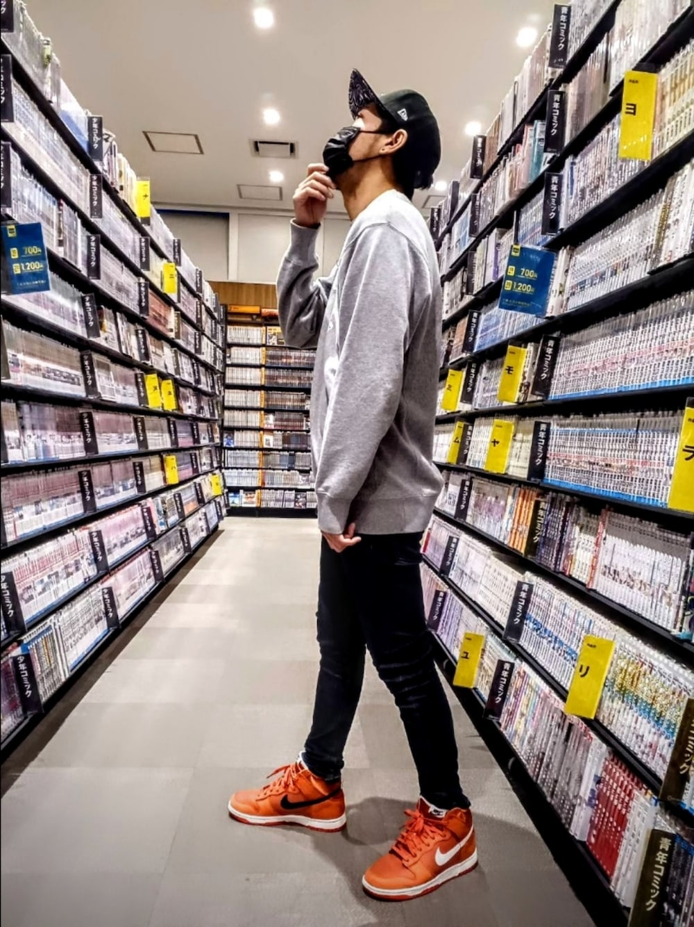 毎日たくさんの閲覧、いいねありがとうです🥴コーデ気にいってくれたらセーブしてくれると嬉しいです😳 今日は昨日嬉しい出来事があって寝つけそうになかったので深夜のレンタルショップに出かけた時のコーデです✨お客さん0だったので漫画選んでる姿を撮らせていただきました🥴 まだ夜+無人の店内は寒いのでスウェットでちょうど良かったです💪 ポイントはモノートン(黒+白+灰色)に足下だけすごく目の行く配色です👅 ナイキのSwooshのカラーも白と黒の2色で切り替わってますので余計にオレンジに意識がむくと思います🎵 さて今日はゆっくりレンタルしてきた漫画を読みながらreggae聞きます✨ あっ最後に今日のオススメの1曲はFireballさんで「みんなのうた」です。 ハートフルなSONGになってますので心がほんわかしますよ🥴 YouTubeでKING of SWAGさんが曲に合わせてキレキレのダンス動画あげているので気になるかたはぜひチェックを✌️ では休みの方はよい休日を👍️お仕事の方はファイトです💪