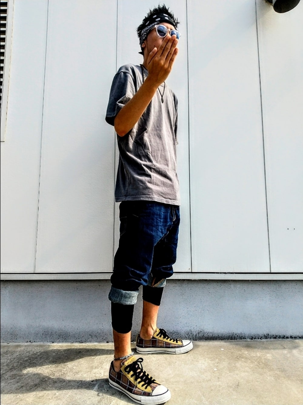 みなさんいつもたくさんの、閲覧、いいね、ありがとうございます🎵 また昨日の忍者投稿でたくさんフォルダインしていただき大感謝です🙇 今日のコーデは漫画に登場しそうな香港にルーツを持つ殺し屋コーデです🤩 せっかく忍者コーデに合わせて小物を買ったので、何か別のコーデに生かしたくて、というかバンダナ&辮髪を使いたくて(笑)忍者と違うアプローチでコーデしてみました😄 ポーズだけはカカシの永遠のライバル、木の葉の気高き碧い猛獣「マイト・ガイ」のポーズです😳昨日のカカシの隣にこのポーズで並ばせたかったので👅 コーデのイメージ的には今ジャンプで連載されてる中でも楽しみにしている漫画、SAKAMOTO DAYSに登場しそうな、暗器使いの殺し屋です👍️ この漫画、結婚して殺し屋を引退した坂本さんがかつての組織のトラブルに巻き込まれていくって話しなんですけど、登場人物の服装が、カジュアルだったりストリートだったりお洒落なので、そんなイメージでこんなキャラいそう‼️って思うコーデにしてみました😄 ポイント的には、サルエルデニムを裾クルクルしてインナーにレギンスを履いてゆったりからのシュッ✨みたいな感じにしたのと、バンダナからの青サングラスからの辮髪で香港とかの暗殺組織から送りこまれたみたいな怪しい感じにしました🤗 最後にスニーカーでお洒落感出したかったので、チェック柄の可愛いCONVERSE履きました🥰 何か中2臭いテーマ決めてコーデ組むのは忍者にしろ今回にしろめちゃくちゃ楽しいです🤩 「僕の中のモンスターが破裂しそう」です🤣(MONSTERより) 小窓に嬉しかったプレゼントを紹介します✨奥様が写真とれない時に写真を頼んでいる友達のOさんが、ナルトの少年期の火影バージョンのサイン付き下敷きを僕が忍者投稿するのに合わせて、プレゼントしてくれてめちゃくちゃ嬉しかったので載せました😂 最後にフォロワー様が気がつけば、イナバ物置の収容人数(100人)を超えてました‼️もうイナバの上に乗りきれません🤣大丈夫って言えません🤣 ごめんよララァ……僕には投稿する場所があって待っててくれてる人がいる…こんなに嬉しいことはないです🥰←いつもの言いたいだけですアムロです(笑) 飽き性な僕がコツコツ投稿続けれてるの本当にここでの優しいみなさんとの繋がりが楽しいおかげです😂 みなさんいつも本当にありがとうです🙇 ではみなさん今日も良い1日を🙋