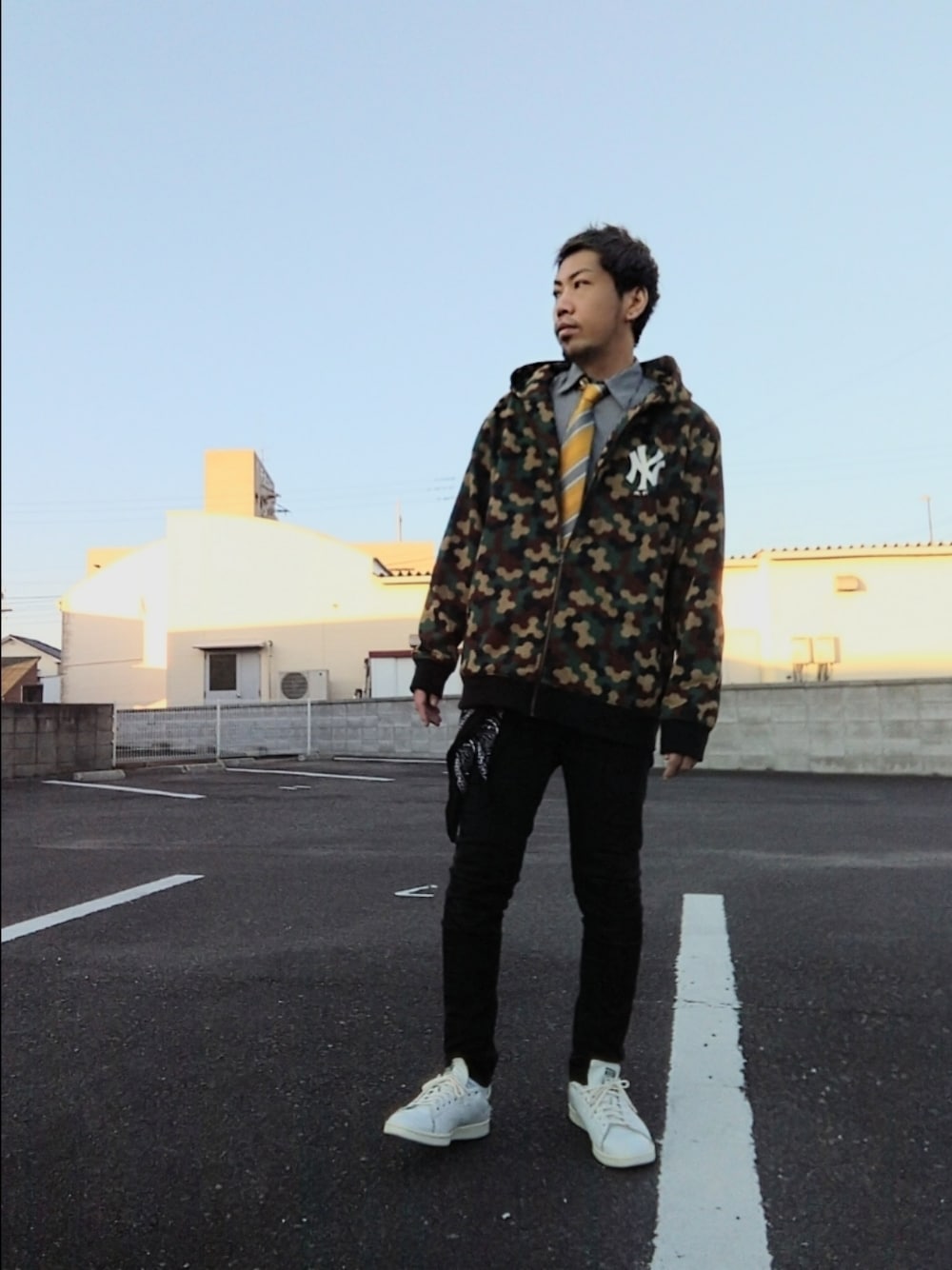 みなさんいつもたくさんのリアクション、フォルダインありがとうございます🥰✨ 今日のコーデは“フォーマルカジュアル”です🎵 フォーマルなシャツ+ネクタイに黒スキニーを カモ柄のパーカー、バンダナでカジュアルダウンに そこにスタンスミス🥰✨ スタンスミスは本当に万能スニーカーで、コーデのバランスをとりたい時に良く履くし、フォーマルな意識強い時はスタンスミスが自分は好きです🤗 バンダナを腰にもってきたとこが個人的ミソです😁 初詣みなさん行きましたか? 自分は良くなってきたのが悪化しそうで次回の病院いってから以降の初詣となりそうですね😂 今年は日常の尊さをすごく感じる年始となりました💦 被災地の方、まだまだ予断を許さぬ状況の中で、祈る事しか出来なくて申し訳ないですが、引き続きの安全を願ってます。 小窓は、去年のクリスマスに友達からプレゼントされた、ナイトストライクガンダムが完成したので乗せました🤗 ガンプラ作ってたら気がつくと年越えてました(こんな年越し初めて🤣) ちゃんと腰に負担ないように、寝転がって作りましたよ🎵 そして嫁ッシーゲームコーデもついに10まできました👏 今回は新年なので着物のSPバージョンです😌 これまでの嫁ッシーゲームコーデをまとめて見たい人のために #嫁ッシーゲームコーデ で検索出来るように🏷️つけましたので気になるかたはチェックしてみてくださいね🤭 ではみなさん今日も良い1日を🙋
