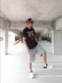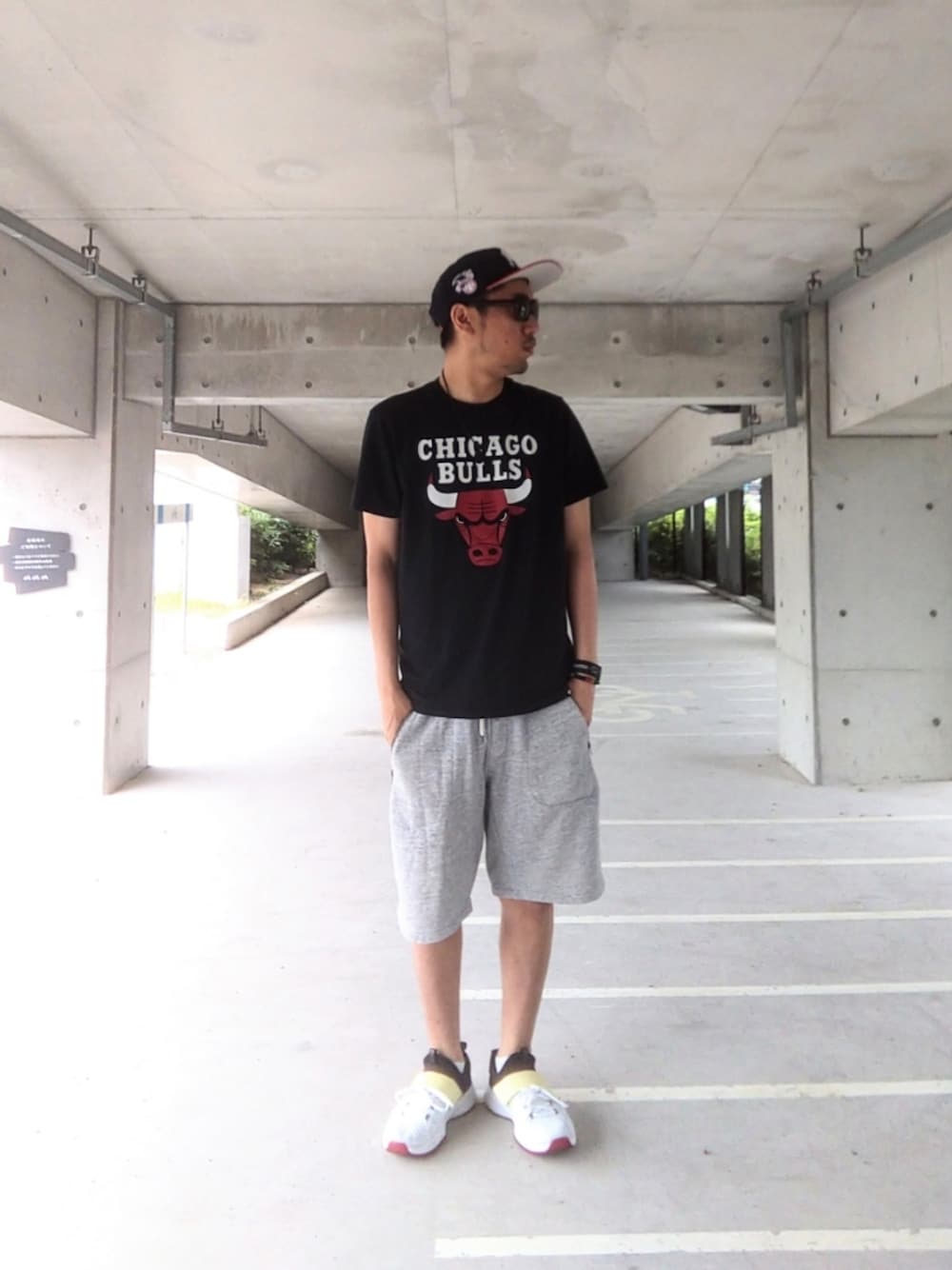 今日2回目の投稿失礼します🙇♂️ 2回目のコーデはブルズのTシャツに合わして赤×黒×白を意識したリンクコーデです ポイントは赤のスパイス具合です 幸楽で日々、厨房に立ってるので (そういう設定です) 料理はスパイスのさじ加減がスゴイ大事だなってわかってるんです🤣 てことでスニーカーを白強めにしたのがこのコーデの味噌です✨ そしてスニーカーとトップスの間に黒と白の中間色のグレーを持ってきた所もポイントです🎵 ハーフパンツはポケットにジップが付いててジップアップすると中の物を落とす心配がないのがめっちゃ便利なんです😁 スマホやキーをポケットに入れて座ってると良く落とすので(笑)💦 ハーフパンツ祭りも残す所もう後1日となりました🎵 最後はみなさん一緒にゴールテープ駆け抜けたいです✨ スタジオでは我らのゴールを🐸が爆風スランプのランナーの合唱で待ってくれてます🤣 ではみなさん良い夜を🙋
