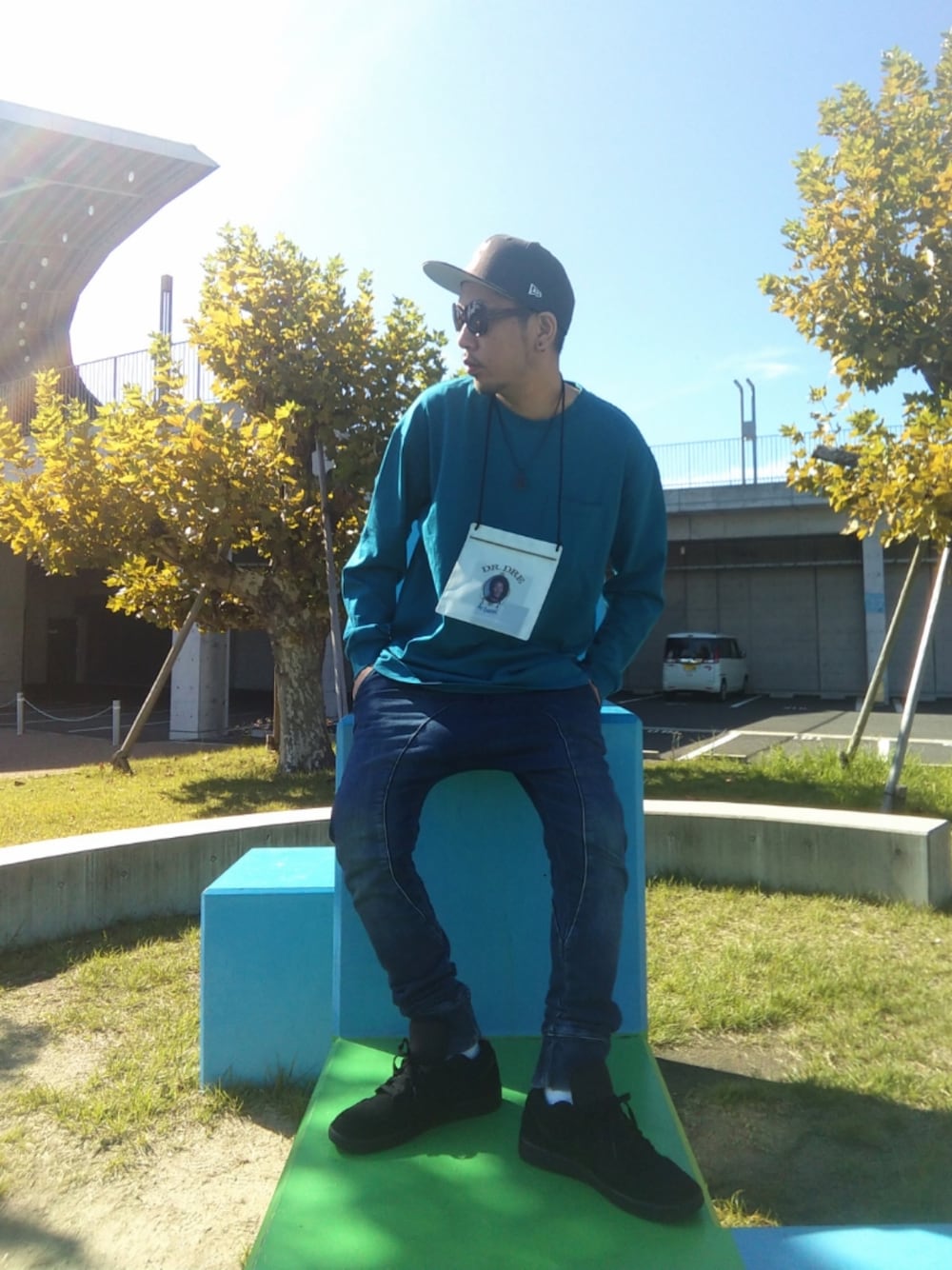 今日2回目の投稿失礼します🙇♂️ コーデは今日のリアコで気温が27度あったのでロンTでも暑くてヤバかったです🥵 昨日に僕の住んでる街の有名な喧嘩祭りがあり家族で集まって昔の写真を見てると14年前はこの時期にほぼ冬みたいな服装してたんですよね💦 それが今や夏みたいな服装でいけるって ヤバいなと思い投稿しました✨ ↑投稿の理由🤣 コーデのポイントはトップスとパンツで青系リンクの空イメージに 秋色なキャップと足元はオールブラックのスニーカーで落ち着いた雰囲気をプラスして 最後にポーチのDr.ドレがアクセントです🎵 「秋の空とDr.dre」 です🤣 では2回目の投稿にお付きあいありがとうございました🙇♂️ みなさん良い夜を🙋