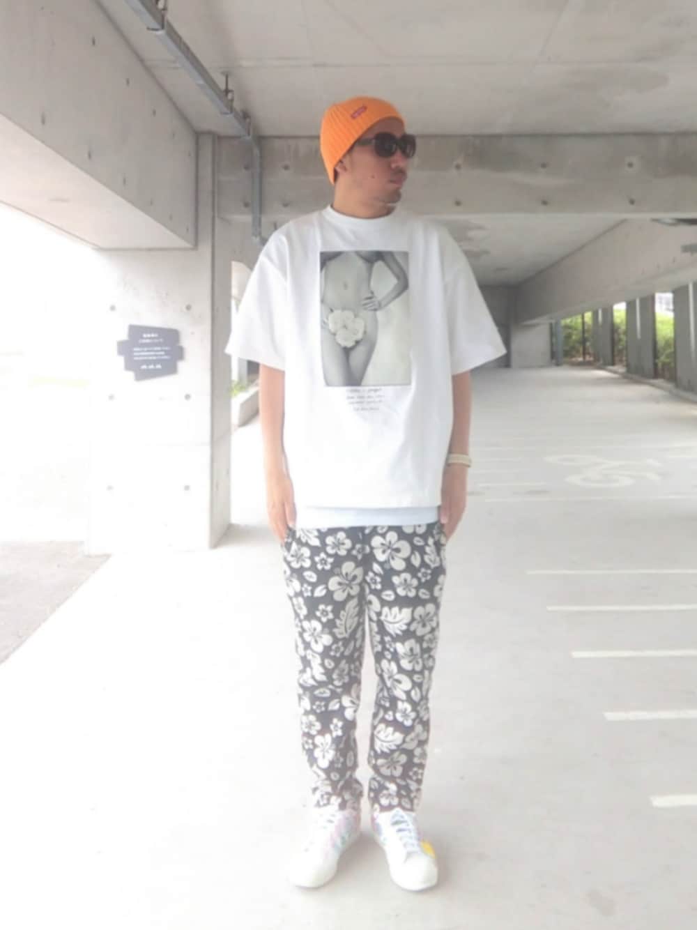 今日も2回目の投稿失礼します😜 トップスのお洒落かつセクシーなプリントの花柄に合わせてパンツ、スニーカーでリンクを意識したコーデ🎵 花リンクで華を出すイメージ🏵️🌺🌻 でコーデした点がポイントです ビーニーとスニーカーで華やかなカラー差しも良い感じになりました✨ 今日は倒れちゃうくらい暑いですね🥵 夏の魔の手がもうそこまで迫ってきてますね💦 オジサンに夏はキツいぜ🤣 2回目はコメ閉じになります🙏 ではみなさん良い夜を🙋