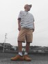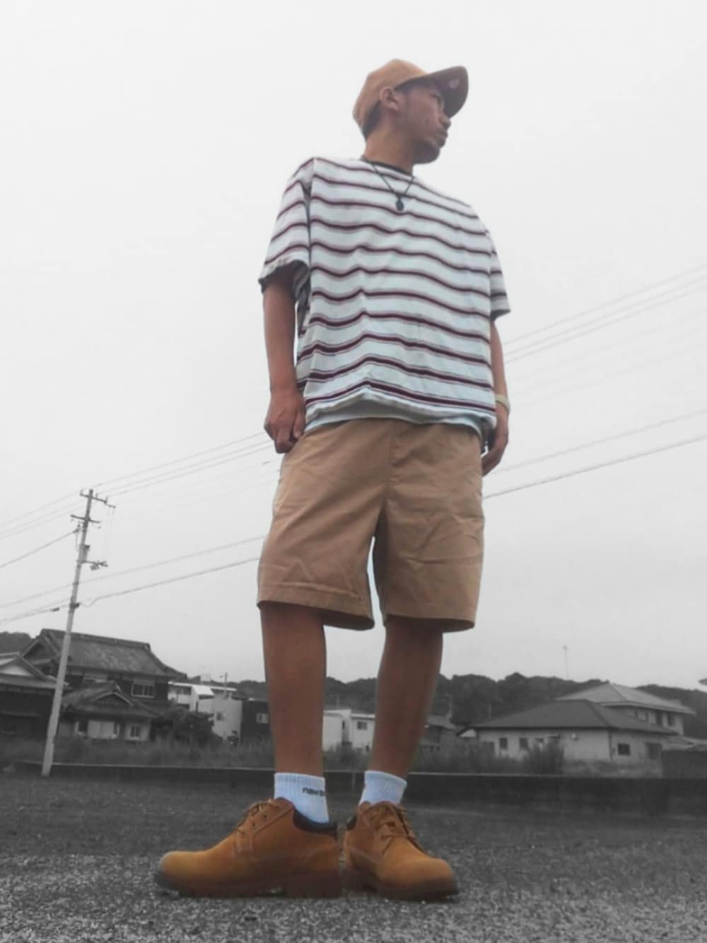 みなさんいつもありがとうございます😁 今日はハーフパンツコーデ二本立て投稿です 画像1.2がアウトドアストリートコーデ (アイテム表示右上) 画像3.4が赤×黒ストリート (アイテム表示左下) アウトドアストリートコーデは ベージュ系でリンクを作りボーダーTと靴下の白を差し色にするイメージでコーデした点がポイントです✨ 赤×黒ストリートコーデは ハーフパンツとキャップの黒リンク、スニーカーのシューレースとTシャツの赤リンクでバランスを取りつつ、キャップのゴールドネックレス刺繍をアクセントにした点がポイントです✨ どっちのコーデもインナーに着たレイヤードのタンクトップが影のMVP🎵 タイトルはハーフパンツ×ハーフパンツの略 HUNTER×HUNTERじゃないですよ🤣 ハーフパンツのコーデ二本立てって事です👍️ ではみなさん今日も良い1日を🙋
