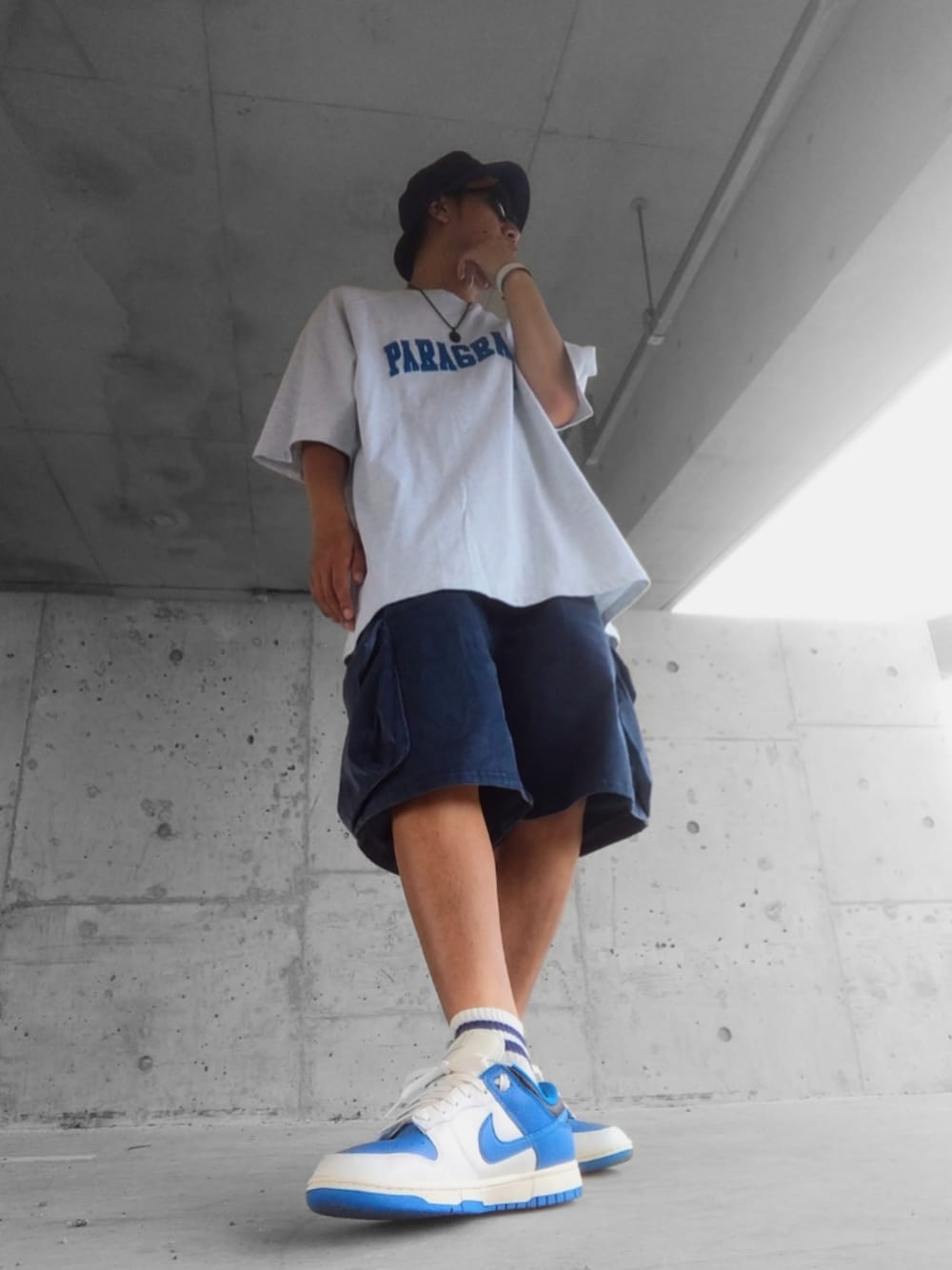 みなさんいつもありがとうございます😁 今日は青系リンクを意識したストリートです🎵 ポイントは世界に1足だけのスペシャルスニーカー NIKE DUNK"BLUE LOCK" Nike By Youにそれっぽい名前を付けただけなんですが 世界に1足ってのは嘘でなくて 自分がカラー、パーツ、シューレス、刺繍、etc…を デザインして発注したオリジナルスニーカーを作ってくれるサービスがNike By Youで 今回のスニーカーはDUNKをベースにした1足になります 自分は今年は悲しい出来事がり、それが落ち着いてきたから親しい友達達が計画してプレゼントしてくれました コーデはスニーカーに合わせて青系のリンクを意識してまとめました✨わかりずらいけど靴下のラインも紺色っす トップスのparagraphは韓国のストリートブランドです 素敵すぎるスニーカー大切にしたいです🥰 Nike By Youは自分も人にプレゼントする時に利用した事あるけど、ベースとなるスニーカーもたくさんの種類から選べるし左右アシンメトリーにしたりとか細かな部分までデザインを決めれるからオススメのサービスです😆 画像が残っていたので小窓に以前にWEARで紹介したハッシーデザインのやつ載せておきます🤣 ではみなさん今日も良い1日を🙋