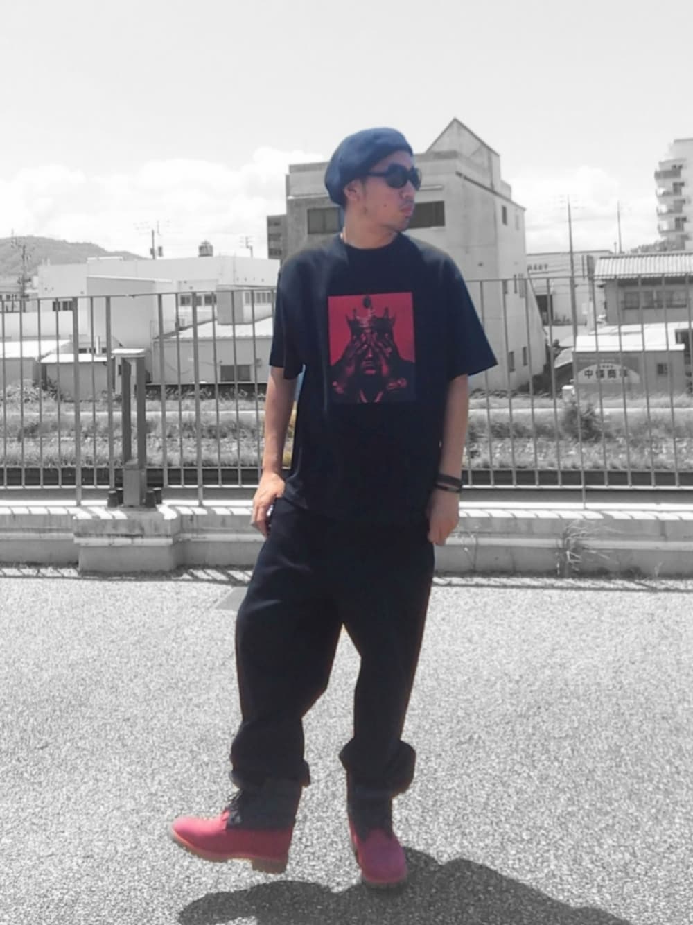 今日2回目の投稿失礼します🙇♂️ 機種変による文字入力に対応出来そうなの&前機種での写真を早めに使いきりたくて2回目の投稿しちゃいました🤣 このコーデはカラー&シルエットバランスが共にお気に入りで 黒まとめにブーツとTシャツの赤差しがバッチリ決まりました🔥 Tシャツのプリントは2pacと並ぶレジェンド ノトーリアスBIGです ビギーをイメージしてオールドスクールなhiphopを意識した点がポイントです😁 2回目の投稿にお付き合いありがとうございました😊 皆さん良い午後をお過ごし下さい😌
