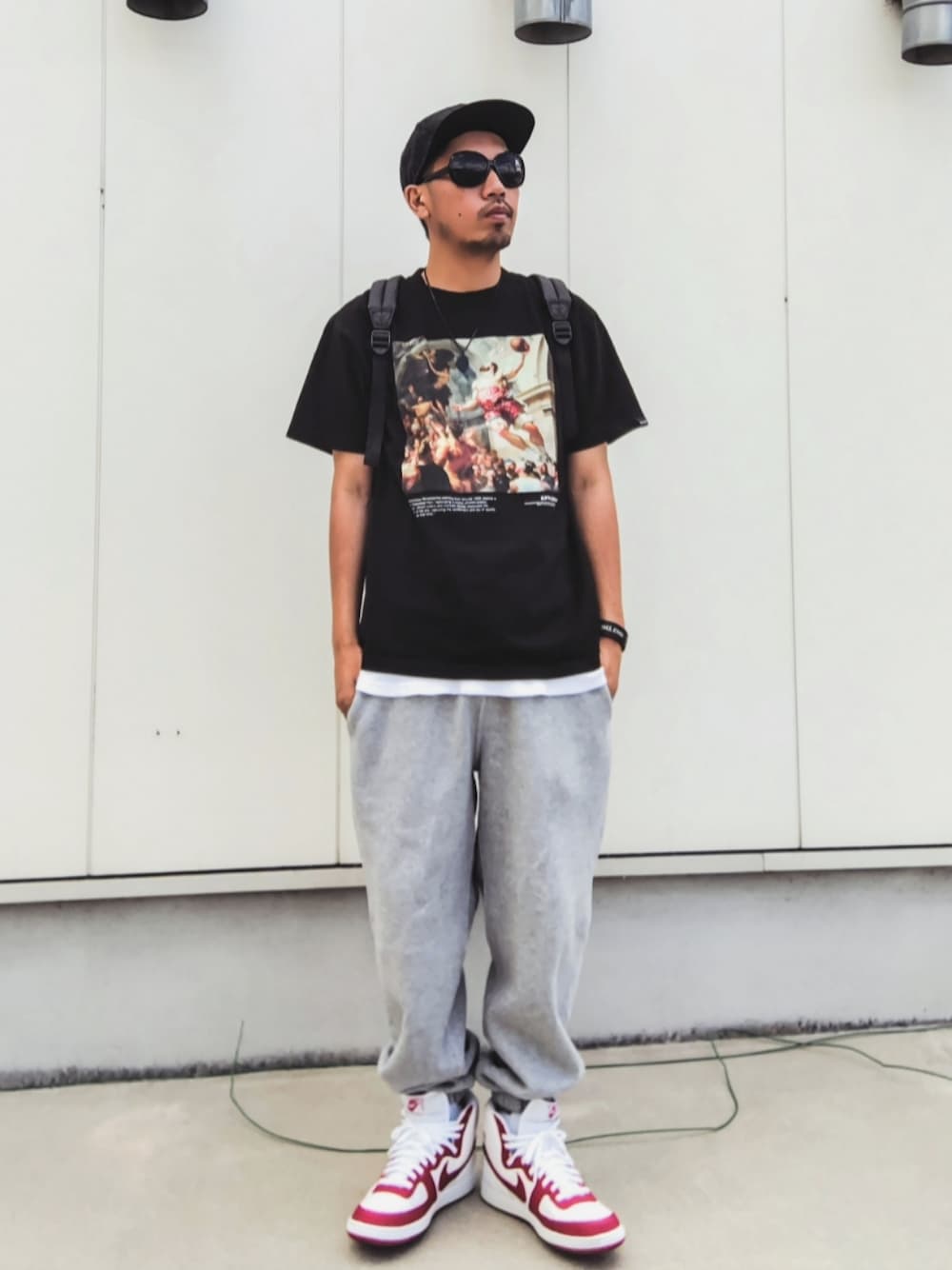 みなさんいつもありがとうございます😁 今日はスポーツMIXなストリートコーデ スウェットパンツ×ハイカットスニーカーの見せ方がポイント 説明が難しいんですが💦キャップのジャンプマンとTシャツのバスケしている人で「ダンク」をしようとアプローチしているポーズリンク(笑)を狙ったのが密かなこだわりポイントです🤭 力の抜けた楽なコーデでありつつ、まとめる部分はまとめて全体的に良いバランスになったと思います🎵 タイトルは… スポーツMIXとスポーツ・マックス(JOJO)をかけました🤣 エルメェスに排水管に沈められないよう気をつけたいです💦 ↑言いたいだけ🤣 ではみなさん今日も良い1日を🙋