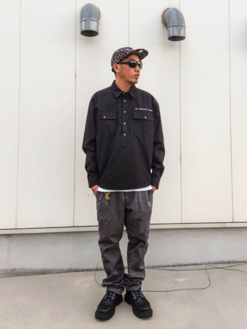 みなさんいつもありがとうございます😁 今日はワークストリート プルオーバーシャツ×ナローパンツで無骨なワーク感を意識して そこにキャップの花柄とキーリングのスカルをアクセントにした点がポイントです モノトーン合わせによる大人な雰囲気も良い感じに出せました 今日は投稿文に書く小ネタがまったく思いつかなかったためコーデの説明のみとなりました🤣 そんな日もあっていいじゃない 人間だもの だものぉ〜🙌 ではみなさん今日も良い1日を😌