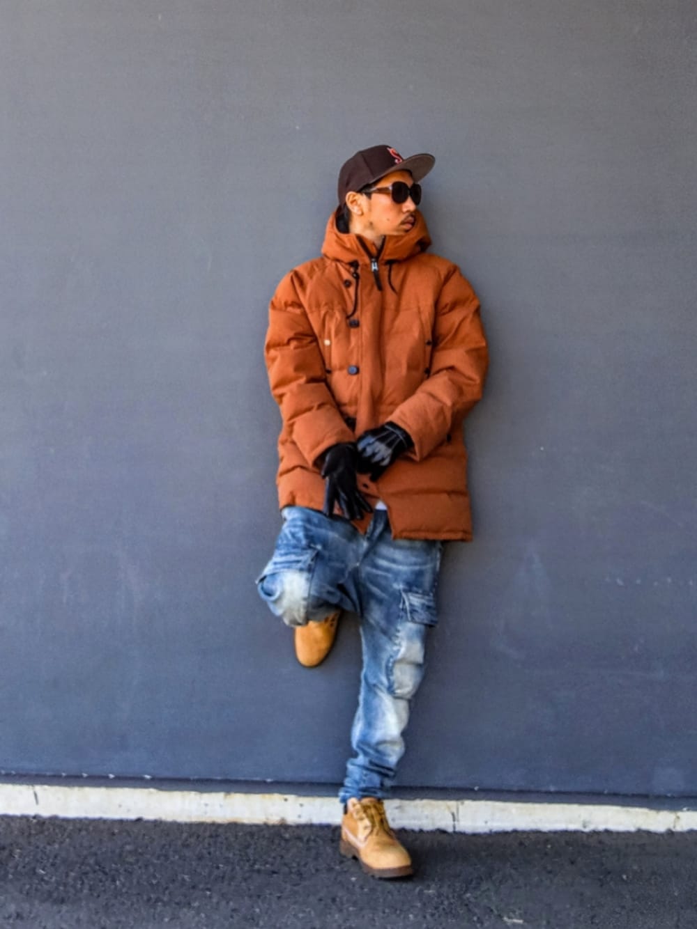 みなさんいつもありがとうございます😁 今日は防寒ストリート 自分の住んでる地域は冬でもそこまで寒くならない上に自分は移動が基本的に車なのと屋内は暖房で暖かいって理由でこれまで ガチのヘビーアウターを買って来てなかったんですがWEARのみなさんのお洒落な冬コーデ見てたら一着は欲しいと思い🤔 大好きなブランド『430』のN-3Bダウンジャケットを買いました そして寒さに極振りコーデをしてみました レザーグローブは裏起毛でめちゃくちゃ暖かく、さらにデニムの下にはWORKMANのレギンスを装備しているので寒さ耐性MAX ガチに防寒するとしたらここにニット帽を合わせるし パンツもナイロンの裏起毛パンツを履くと思うんですが ファッション的にストリートなニュアンスを出したくて サルエルにキャップ合わせで全体のブラウンリンクも意識した点がコーデのポイントとなります🎵 タイトルはなろう系作品の 痛いのは嫌なので防御力に極振りしたいと思います のもじりです🤣 ではみなさん今日も良い1日を🙋