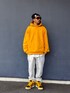 今日2回目の投稿失礼します 2回目はイエローストリート パーカー×スウェットのシンプルなコーデを一工夫して自分の カラー(個性)を出した点がポイントです オーバーサイズのパーカー×レイヤード用タンクトップのゆったり感にスウェットパンツの紐を垂らしてルーズな雰囲気をプラスした見せ方を意識した事 タンクトップの上に黒Tを着る事で首元のレイヤードは黒が見えるようにした事 スウェットパンツの裾をスニーカーにインする事でメリハリが出るようにした事 シンプルなニュアンスのコーデに自分らしいこだわりを乗せる事が出来ました😁 タイトルはコーデの黄色にかけてGOLDやサムライソルジャーで有名な山本隆一郎先生の元ヤンって漫画に出てくる和歌山のチーム『紀伊狼』にしました😜 3回目も投稿する事にしたので(笑)3回目をコメ開けにしますね🤣 休みになると出かけるたびに着替えまくっていて、もう服が趣味と言うよりコーデをする事が趣味になってます🤣 ではみなさん良い午後をお過ごし下さい😌