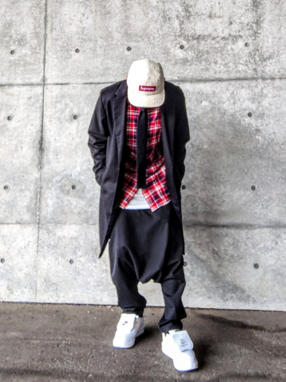 みなさんいつもありがとうございます😁 今日はチェスターコート×チェックシャツ チェスターコートをストリートに着たい‼️ ↑ここがコーデのスタート地点で、いつもはスニーカーからコーデを決めるんですが、今回はチェスターコートから決めて行きました😆 コーデの流れを説明すると チェスターコートをストリートに着たい ↓ インナーにはシャツを合わせよう ↓ シャツよりチェックシャツの方がストリート感出そう ↓ パンツはシルエット感を生かせるサルエルを使おう ↓ スニーカーは綺麗めでもラフでもマッチするkwondo1に決めた ↓ スニーカーに合わせて白が欲しいからレイヤードで白を使おう ↓ 帽子はニット帽やベレー帽より白リンクかつストリート感が出るSupremeのキャンプキャップで行こう ↓ チェックシャツが浮きそうだからニットタイで黒のバランスを取ろう って流れです✨ 結果としてよい感じの大人ストリートにまとまりました🙌 いつもは短く要点を投稿文で説明するんですが たまにはコーデの意図を言語化して解体してみるのも楽しいです 言語化してアウトプット出来るって事はインプットしたものが自分の身についてる証でもありますからね 今日は真面目なファッション回となりました🤣 ではみなさん良い1日を😊
