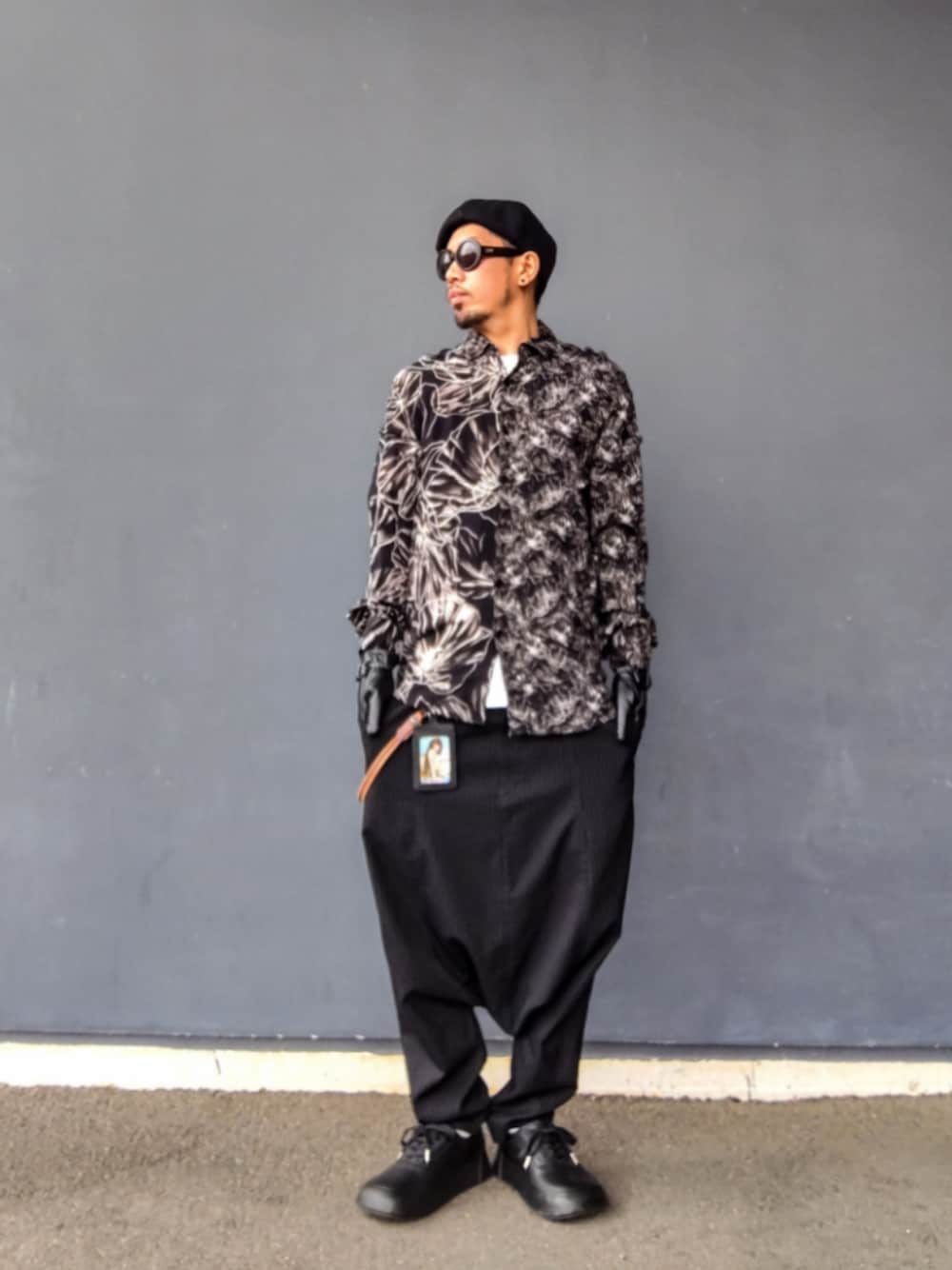 みなさんいつもありがとうございます😁 今日は花柄シャツを使ってモードを意識したコーデ アシンメトリーの花柄のシャツを主役に黒系アイテムを多めに使って大人にまとめた点がポイント シャツは着丈が長く身幅がタイトで、シルエットを生かすようにサルエルパンツで縦長な見せ方をして、靴とレザーグローブで黒系の質感の違いによるコントラストが出るように意識しました ウォレットコードとパスケースは腰回りのアクセントとして付けてます モード系コーデはWEARを始めた事で増えた自分の中の引き出しの1つです✨せっかく服のアプリで投稿してるんだから、他の人の投稿から気になるアイテムにはチャレンジしてみたいし、チャレンジする事で服の幅を広げて行きたいですからね😳 ちなみにこのシャツはプレゼント用に買ったのでもう自分の手元にはないです🤭 人にプレゼントするアイテムを先ず自分が着るのがWEAR流☝️ ↑絶対に違う🤣 ではみなさん今日も良い1日を😊