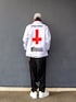 みなさんいつもありがとうございます😁 今日はコーチジャケット×シャツ 白のコーチジャケットにストライプシャツ×ネクタイ合わせで こなれ感を出して、キャップとスニーカーでストリートテイストにまとめた点がポイントです このコーチジャケットはバックプリントのデザインが最高でめちゃくちゃ気にいってます ちなみに今日のウォレットコードのお供はストさんがプレゼントしてくれた呪術廻戦展のステッカーです😉 タイトルはこのコーデを見た嫁ッシーがボソッと呟いた一言🤣 白のコーチジャケットって白衣っぽく見えますもんね🫣 ではみなさん今日も良い1日を😊