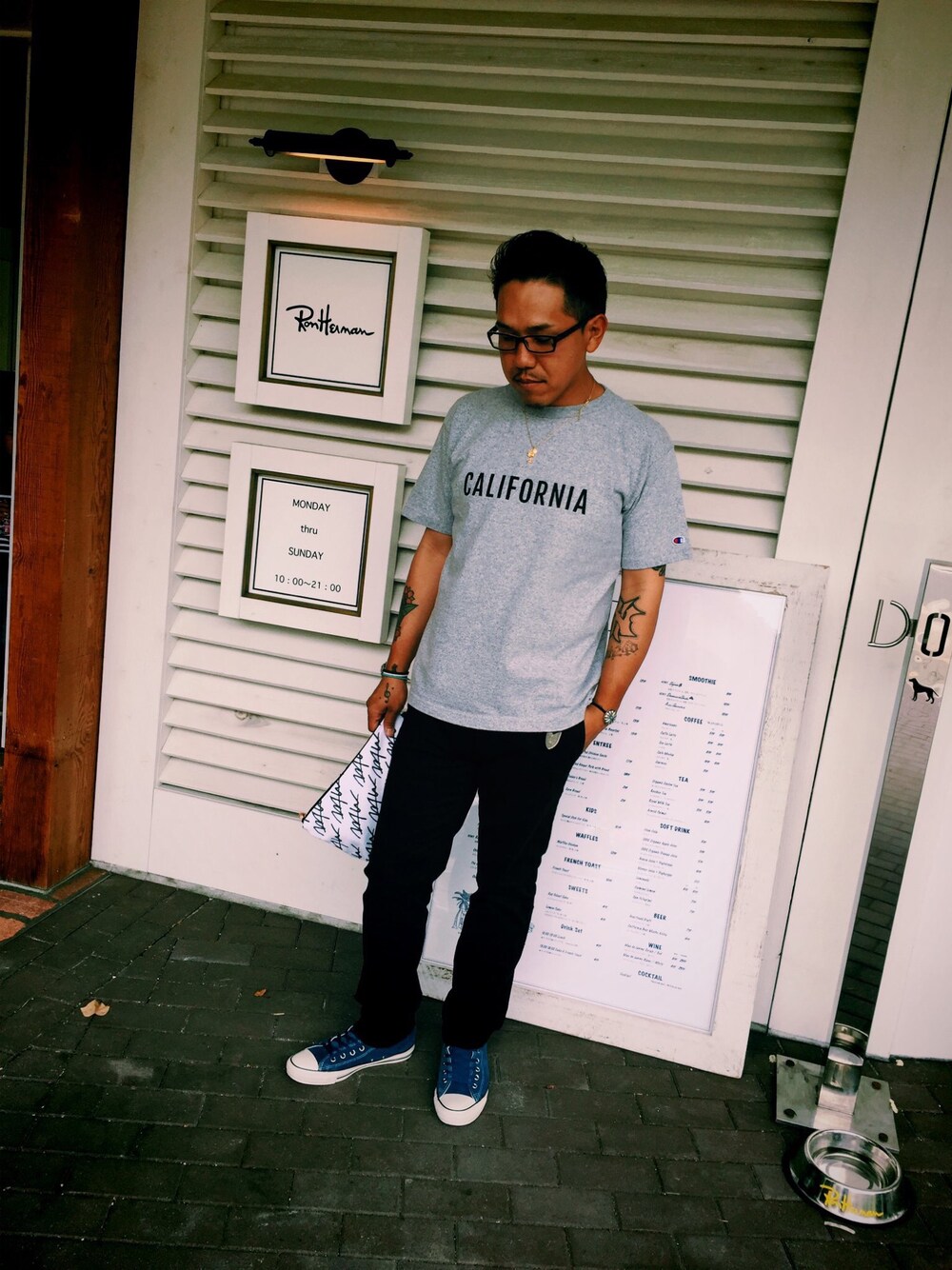 今日の #otns ★ tシャツ/ #rhc × #Champion 別注 パンツ / #oldnavy キックス/ #rhc × #converse 別注 ベルト/ #dowbl アクセ#siestepeau #BINGOBROTHER #ms_ravi バッグ #wtw ★ ★ 少しゆったりめのコーデ🇺🇸