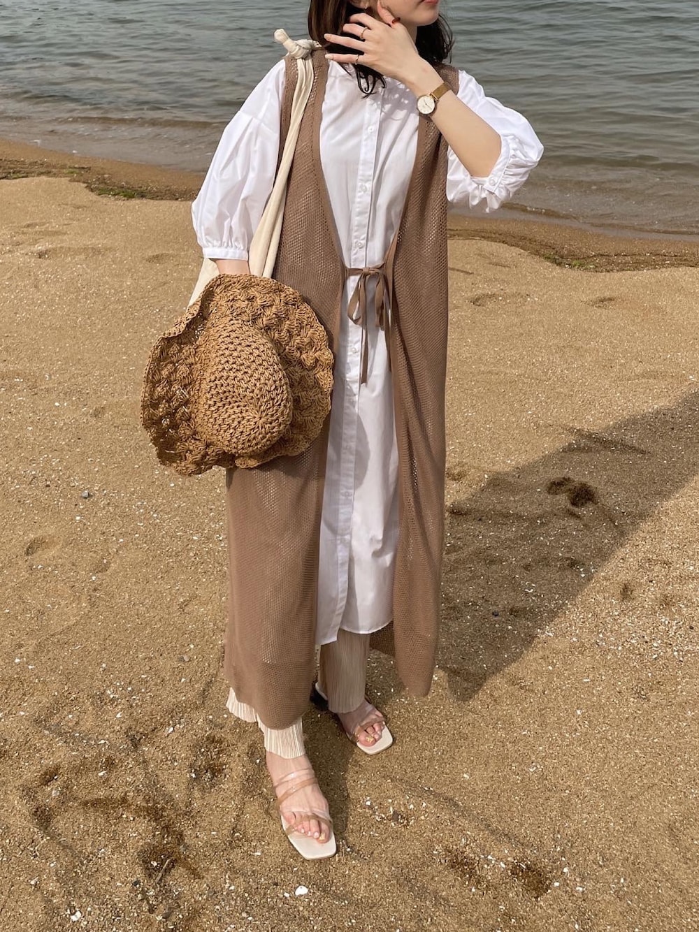 hasuneのベスト「【手洗い可】【前後2WAY】メッシュロングジレ」を使ったコーディネート