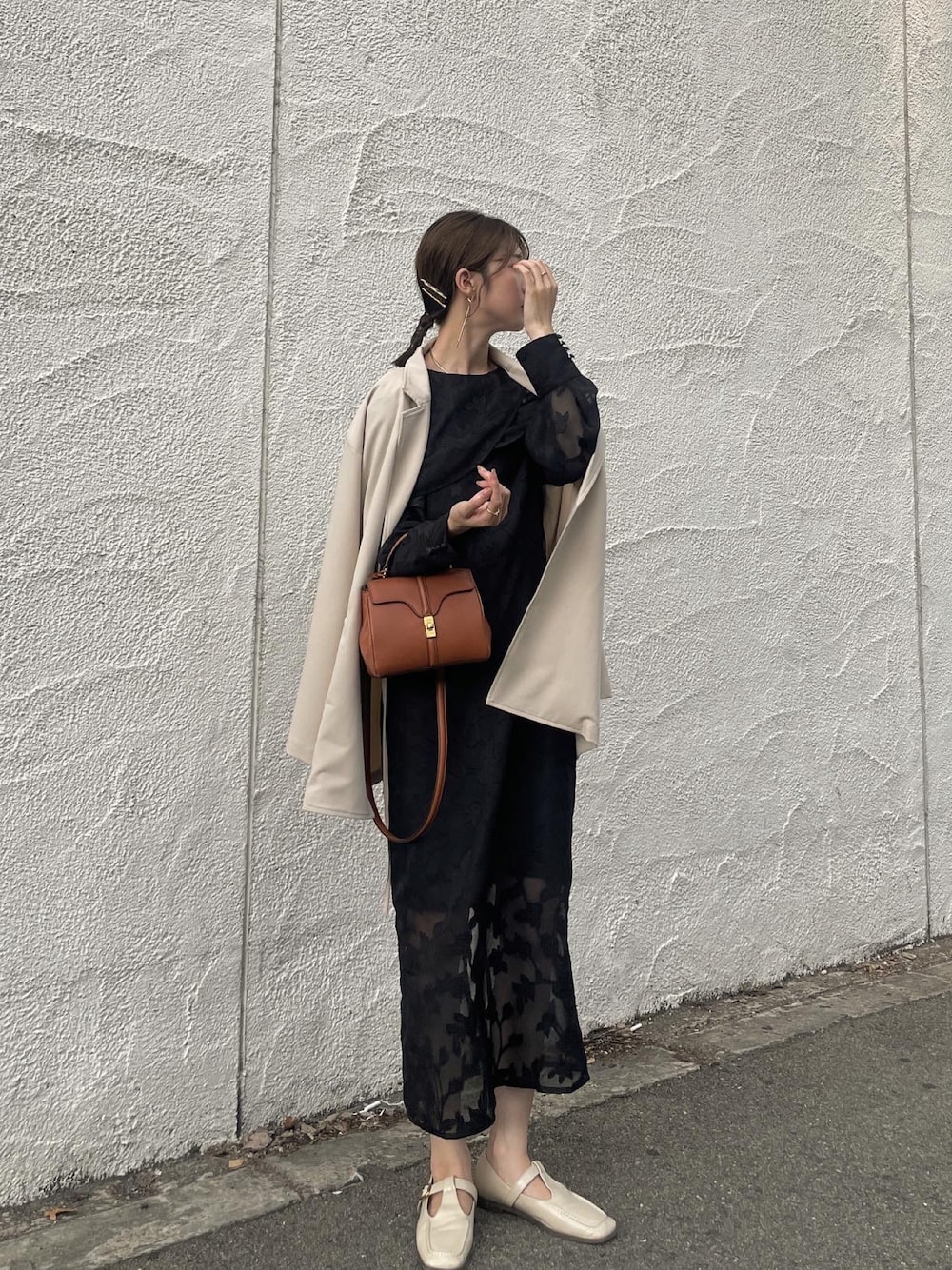 お呼ばれコーデ✨ シックになりすぎないように、 小物やジャケットで華やかに🤝🏻 ㅤㅤㅤㅤㅤㅤㅤㅤㅤㅤㅤㅤ アイテムは全て @eaphi__official のものです✨