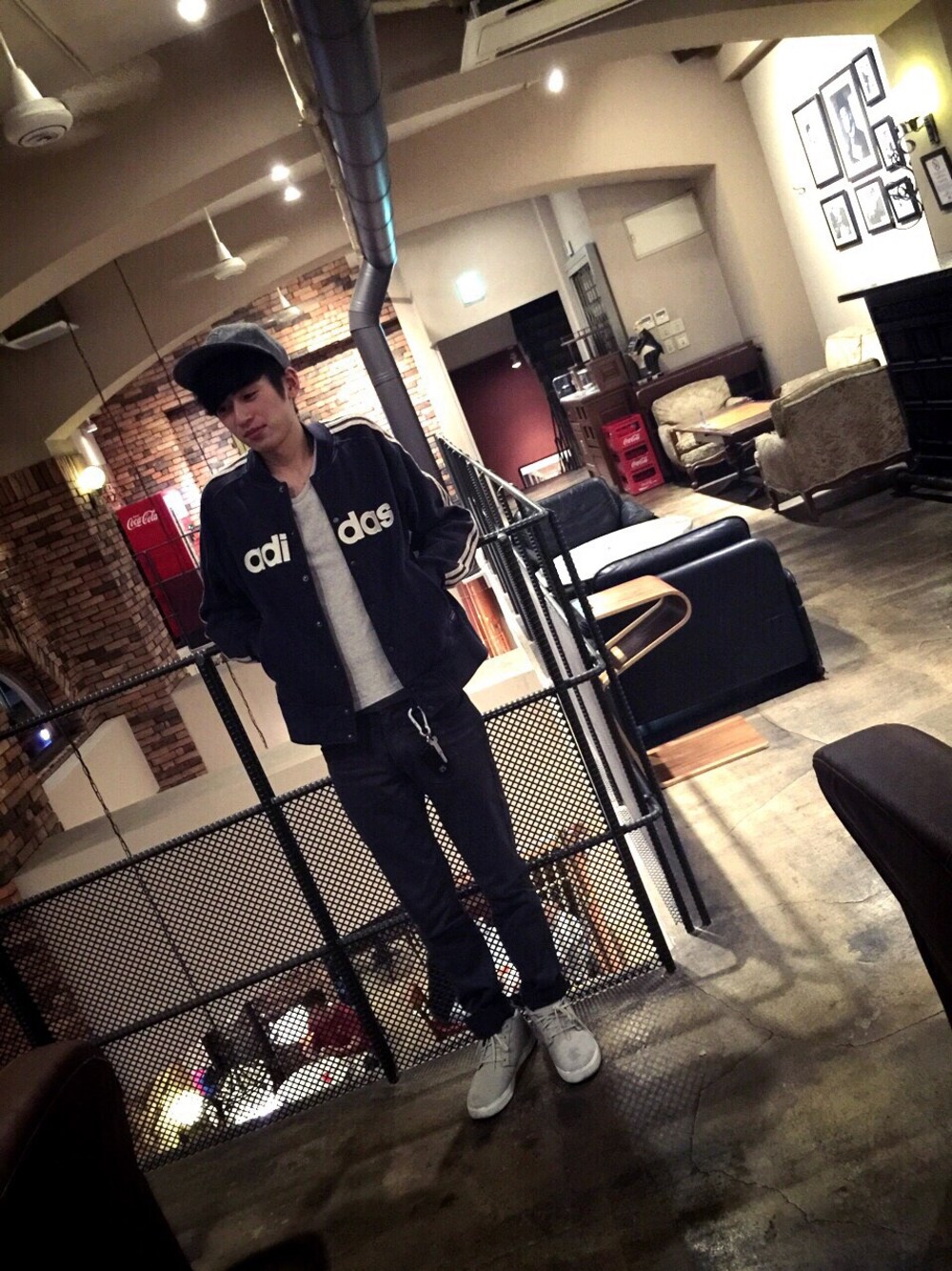 ブルー系のスタジャンを着用したメンズの秋コーディネートの1枚目の写真