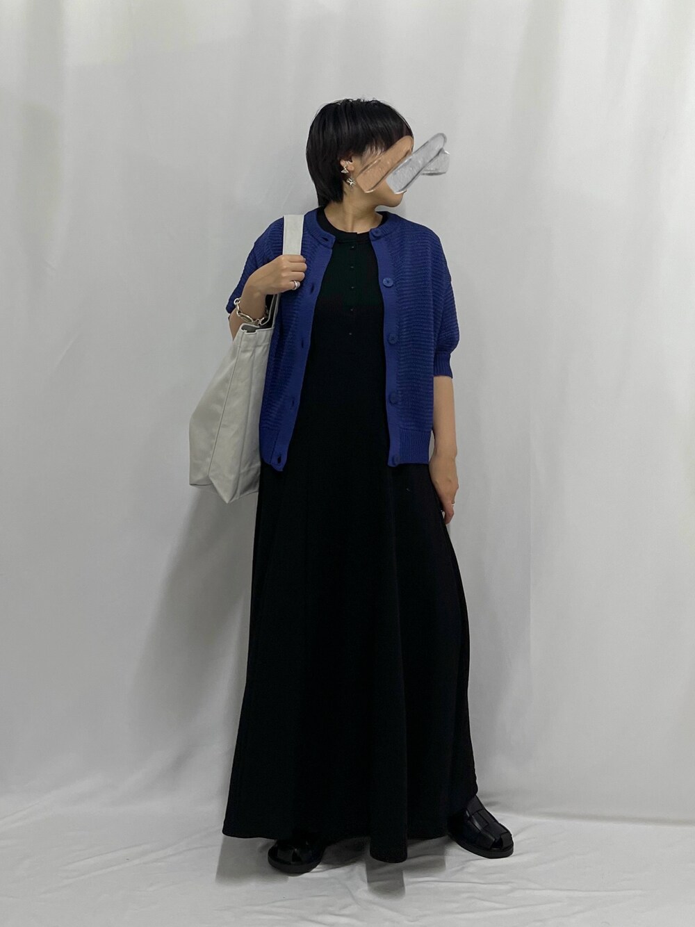 いつもありがとうございます🥰 ワンピ×カーデのレディライクなコーデ。 ブルーとブラックの合わせはすごく好き♪