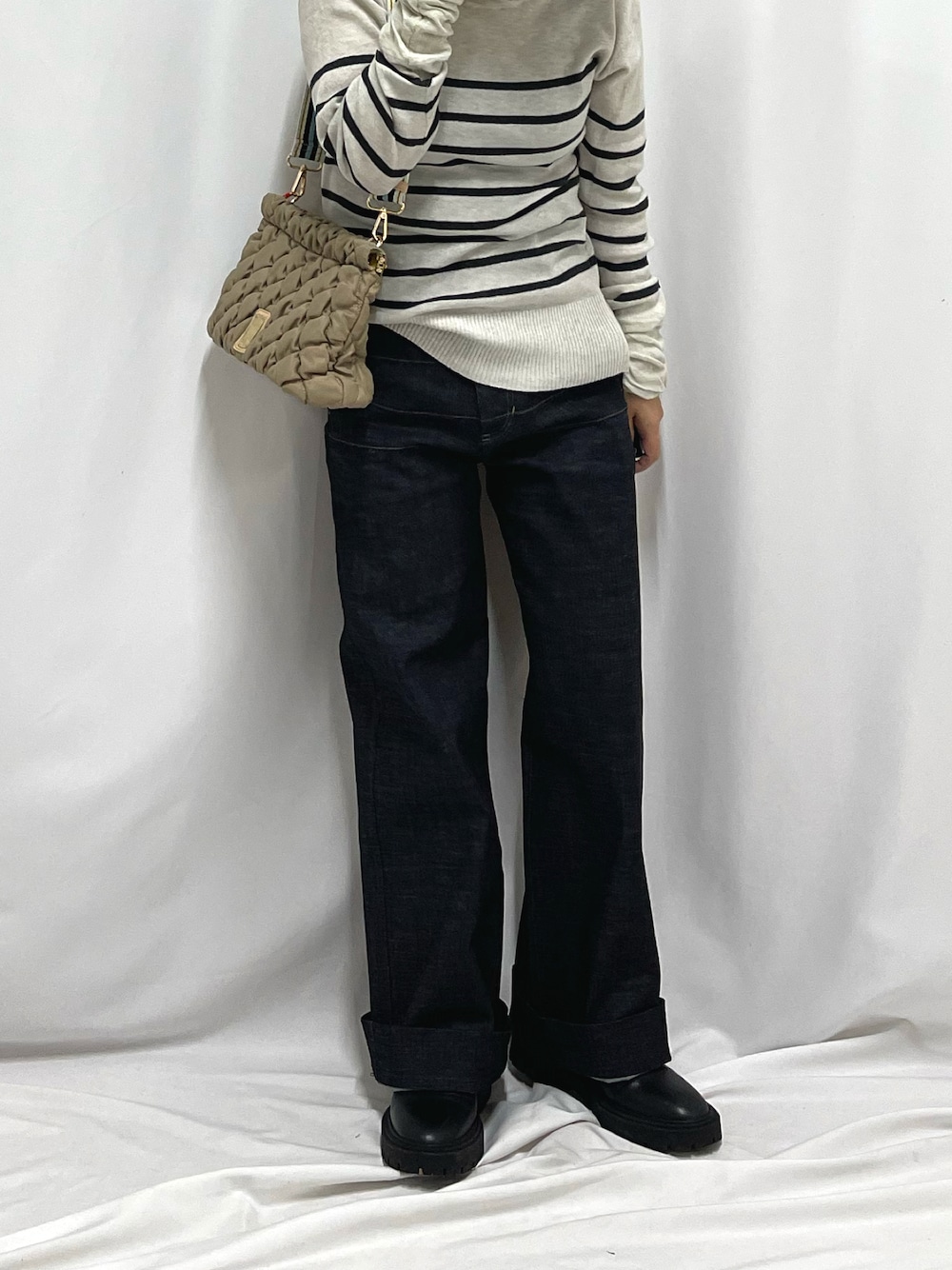 いつもありがとうございます😊 コットンニット×ワイドデニムコーデ。