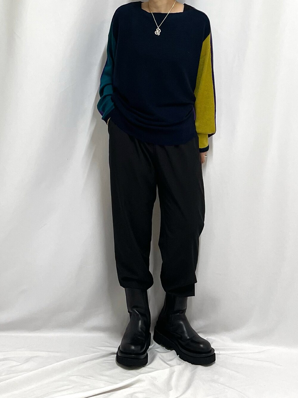 chii(Q manager)のニット/セーター「ブロックカラー横リブドルマンニット」を使ったコーディネート