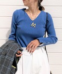 chii(Q manager)のニット/セーター「リブリブVネックニット」を使ったコーディネート