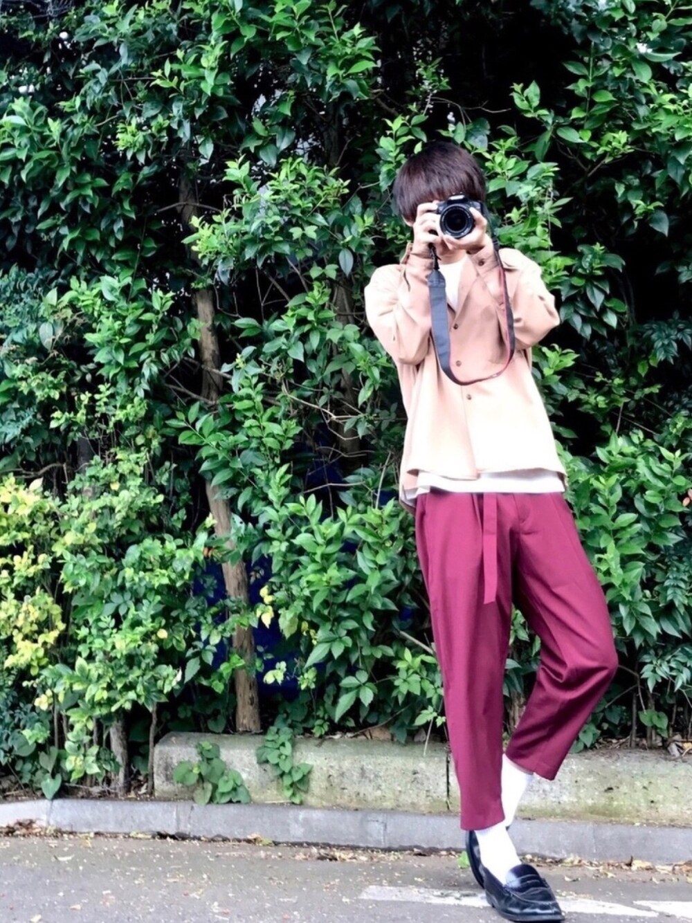 着用コーデ:124件はたひろです☺️ いつも見てくださり、ありがとうございます😊 良かったら今までのコーデも見てみてくださいね(๑⁼̴̀д⁼̴́๑) 昨日のコーデランクインできました⭐️ ありがとうございます😊 なんとなんと、はたひろついに一眼レフ手に入れました!!!⭐️⭐️⭐️⭐️⭐️ しかも、貰い物です笑笑👏 というわけで、これからちょくちょくカメラと一緒に写真撮っていきます(^^) 今日はトレンドの開襟シャツとバーガンディのパンツを合わせました⭐️ HAREの開襟シャツは本当に肌触りが良くて着やすいアイテムになってます✨ やっぱりベージュは赤系の色と相性がいいですね(^^) このパンツは光沢感もあって、すごく気に入ってます! ベルトがすごくオシャレで、ガチャベルトっぽくも使えるし、このベルトを他のパンツで使ったり、 逆にこのパンツのベルトを変えると違った表情を見せるので最高です☺️ 白靴下とローファーがアクセントになって良き👍 良いと思ったら、いいね❤️コメント📝フォローお願いします✌︎