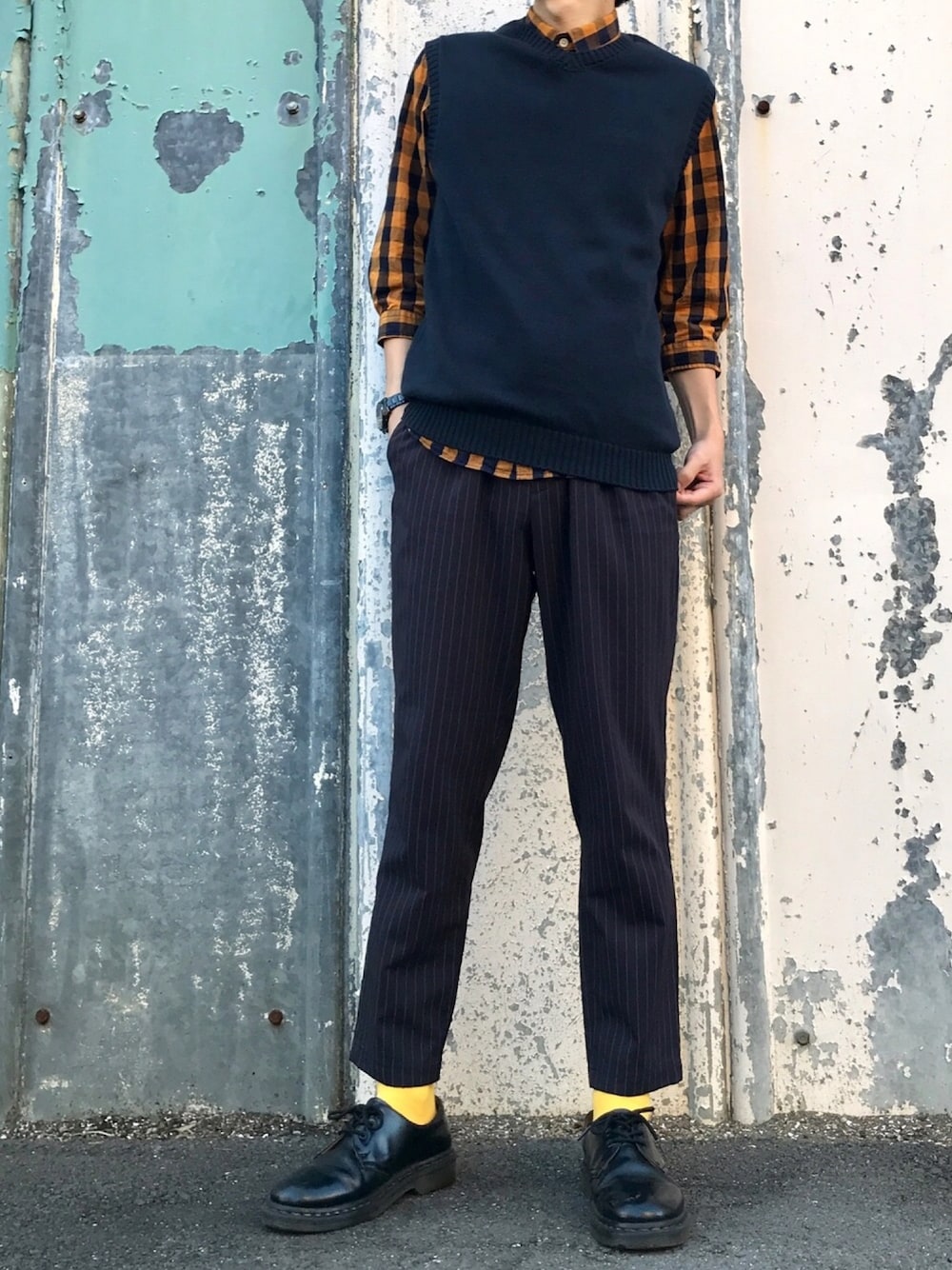 はたひろです🌽 いつも見てくださり、ありがとうございます😊 よかったら今までのコーデも見てみてくださいね^ ^ 今日は! イエローを基調としたニットベストコーデ! チェックシャツの色味がツボ😀 このレイヤードスタイル最強ですね(๑⁼̴̀д⁼̴́๑) ストライプパンツと合わせて足をシュッと見せてみました! 靴下色んな色欲しいなぁ🤤 いつもいいねやお気に入りありがとうございます! コメントしてくださったり、フォルダに入れていただけたりするとすっごく嬉しいです😊 インスタもやってます! wearに載せないようなアイテムの写真や、オシャレな写真を載せていくことを目標にしてます! プロフのリンクから飛べるので、よかったらフォローお願いします🤲 それではみなさん良い一日を👱♂️ お問い合わせ→hatahiro.wear1997@gmail.comかインスタのDMまで👏