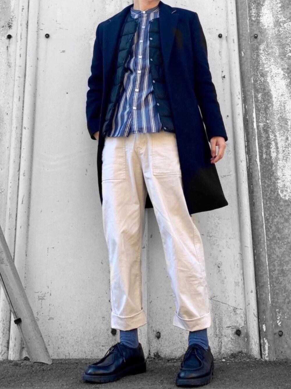はたひろです🌽 いつも見てくださり、ありがとうございます😊 よかったら今までのコーデも見てみてくださいね^ ^ 今日は! チェスターコート×インナーダウン! お気に入りの組み合わせ🤤 このインナーダウンはベストになってるのでアウターとの相性が抜群すぎる! 白のパンツと靴下がアクセント🧦 いつもいいねやお気に入りありがとうございます! コメントしてくださったり、フォルダに入れていただけたりするとすっごく嬉しいです😊 インスタもやってます! wearに載せないようなアイテムの写真や、オシャレな写真を載せていくことを目標にしてます! プロフのリンクから飛べるので、よかったらフォローお願いします🤲 それではみなさん良い一日を👱♂️ お問い合わせ→インスタのDMまで👏