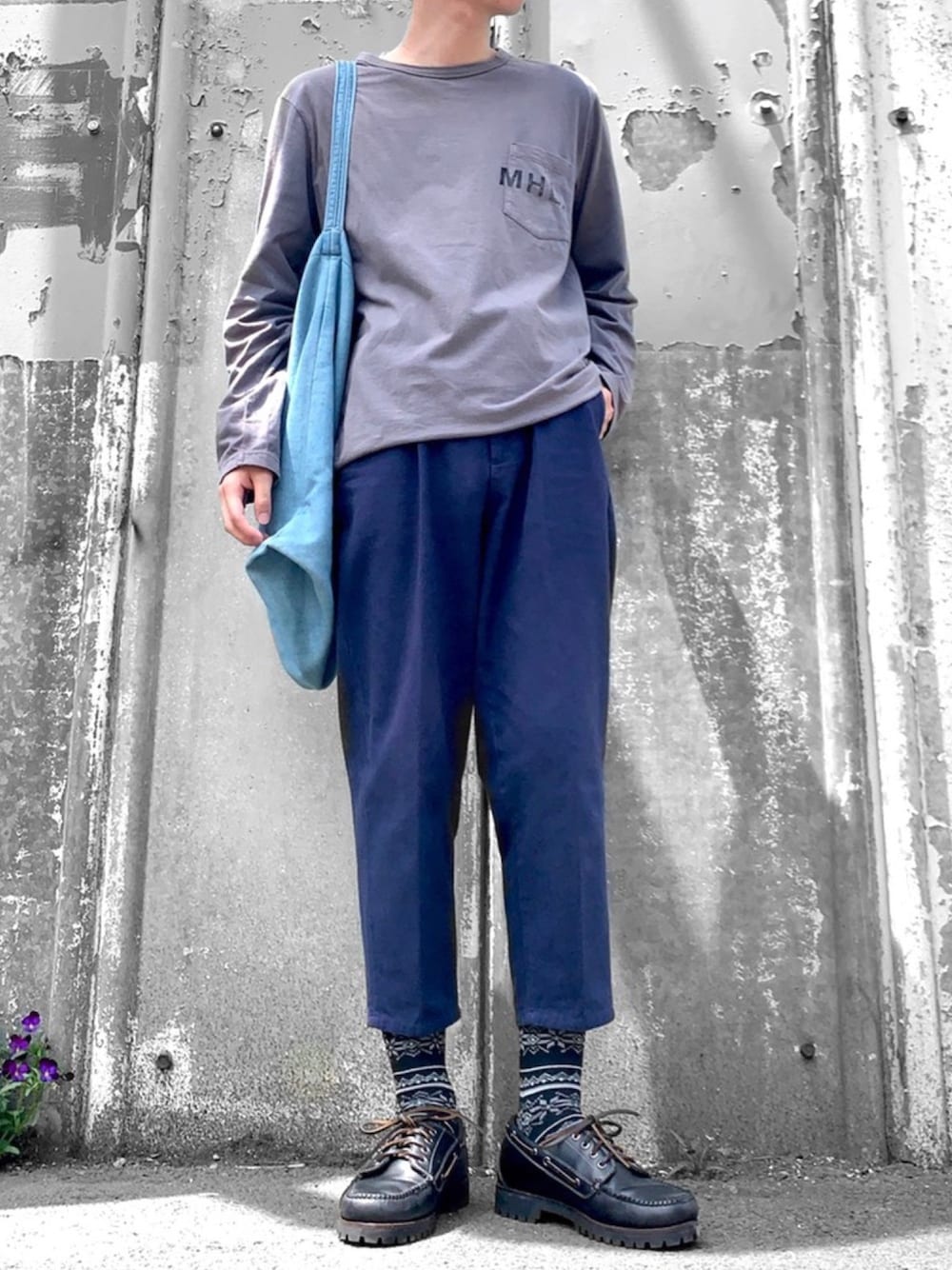 はたひろです🌽🌽 いつも見てくださり、ありがとうございます😊 よかったら今までのコーデも見てみてくださいね^ ^ 今日は! MHL のカットソーを使ったきれいめカジュアル🤤 一枚で着る季節になりましたね☺️ 存在感のあるグレーのトップスをブルーと合わせてみました✌️ かなりお気に入りのシンプルコーデです! 靴下で柄を加えてシンプルの中にも個性を☺️ いつもいいねやお気に入りありがとうございます! コメントしてくださったり、フォルダに入れていただけたりするとすっごく嬉しいです😊 インスタもやってます! wearに載せないようなアイテムの写真や、オシャレな写真を載せていくことを目標にしてます! プロフのリンクから飛べるので、よかったらフォローお願いします🤲 それではみなさん良い一日を👱♂️ お問い合わせ→インスタのDMまで👏