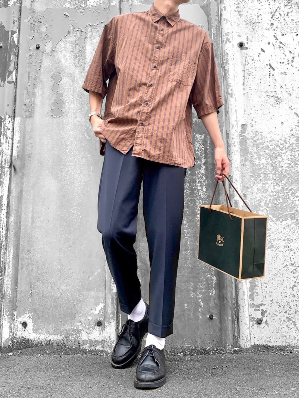 はたひろです🌽 いつも見てくださり、ありがとうございます😊 よかったら今までのコーデも見てみてくださいね^ ^ 今日は! ストライプのビッグシャツを主役にした夏コーデ! スラックスと革靴で定番の組み合わせ🙋♂️ ショッパー持っちゃうコーデです笑 いつもいいねやお気に入りありがとうございます! コメントしてくださったり、フォルダに入れていただけたりするとすっごく嬉しいです😊 インスタもやってます! wearに載せないようなアイテムの写真や、オシャレな写真を載せていくことを目標にしてます! プロフのリンクから飛べるので、よかったらフォローお願いします🤲 それではみなさん良い一日を👱♂️ お問い合わせ→インスタのDMまで👏