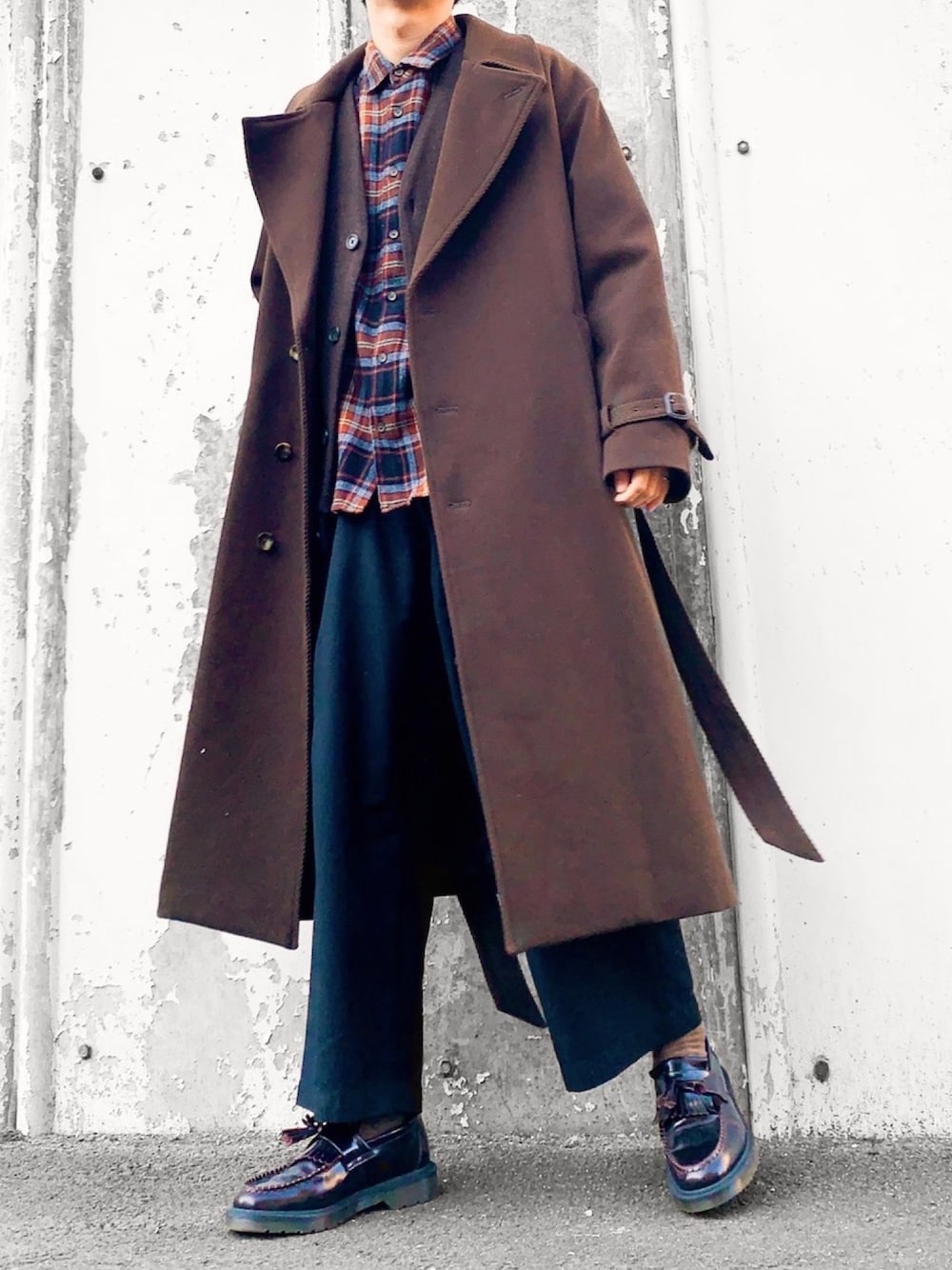 hatahiroのチェスターコート「ニドムカルゼビッグシルエットオフセットコート」を使ったコーディネート