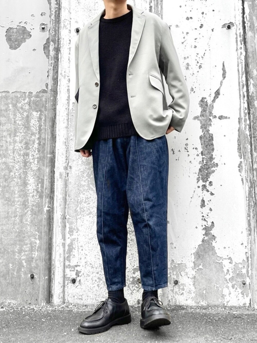 はたひろです🌽 今日は! グレーのテーラード✖️デニム シンプルな組み合わせが一番しっくりくる🙋♂️ とりあえず黒ニット最高です🧶 よかったら他のコーデも覗いていってください☺️